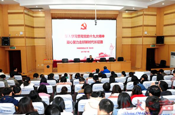 12月1日上午,学习贯彻党的十九大精神省委宣讲团报告会在迎宾楼报告厅举行。省委宣讲团成员、中南财经政法大学党委书记栾永玉作宣讲报告。