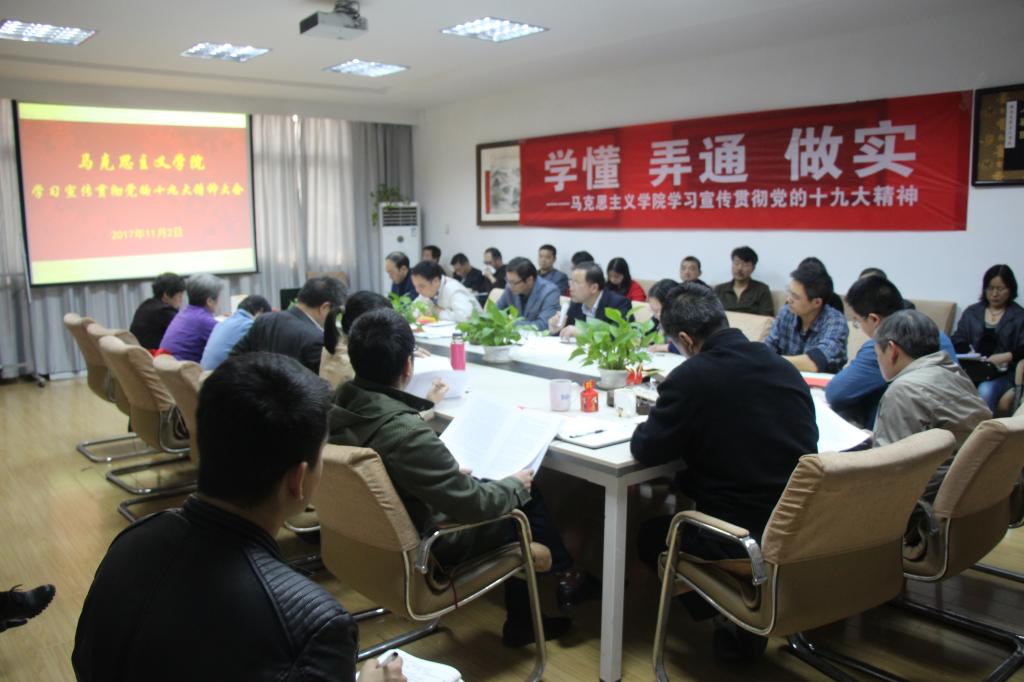 11月2日下午,十大买球的正规网站召开全体党员大会,学习宣传贯彻党的十九大精神,主题为“学懂、弄通、做实——学习宣传贯彻党的十九大精神”。校党委书记何光彩,党委宣传部负责人,学院全体教职工党员、学生党支部委员参加会议。学院党委书记侯志军主持会议。