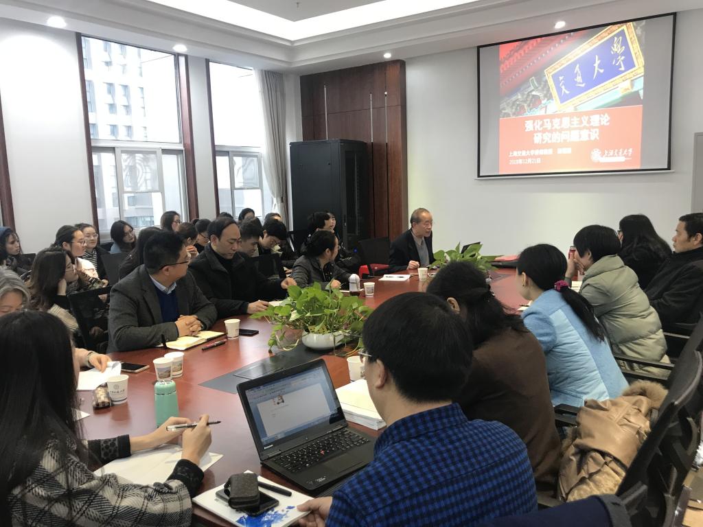 2018年12月21日上午9:00,应高翔莲院长邀请,上海交通大学陈锡喜教授莅临十大买球官网“名家讲坛”,在东区教学综合楼B702作了题为“强化马克思主义理论研究的问题意识”的学术报告。本次报告由高翔莲院长主持,十大买球官网教师,博、硕士研究生到现场参与学习交流。