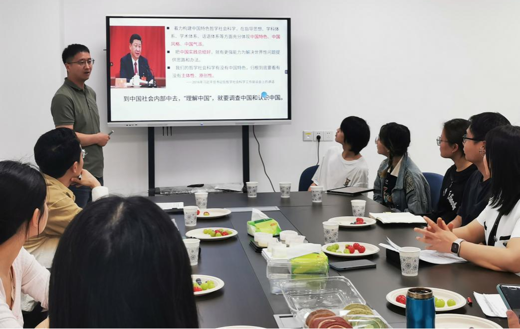 何晓龙老师围绕社会调查方法这一主题,首先从着力构建中国特色哲学社会科学出发,强调社会调查的重要性与迫切性。他提出,到中国社会内部去,“理解中国”,就要调查中国和认识中国。其次,何晓龙老师详细讲解了社会调查的问题意识应主要来源于“大循环”这一路径,从实践到理论再到实践。社会调查研究方法多种多样,主要有问卷调查、访谈法、观察法等。何晓龙老师结合自身调查经验,详细介绍了访谈法在田野调查中的运用和优势。最后,他就调查成果的转化做了详细讲解,指出调查报告和调查随笔的撰写要实现材料与观点的统一,切勿堆砌材料、淡化观点,最终实现调查报告到学术论文的转化。