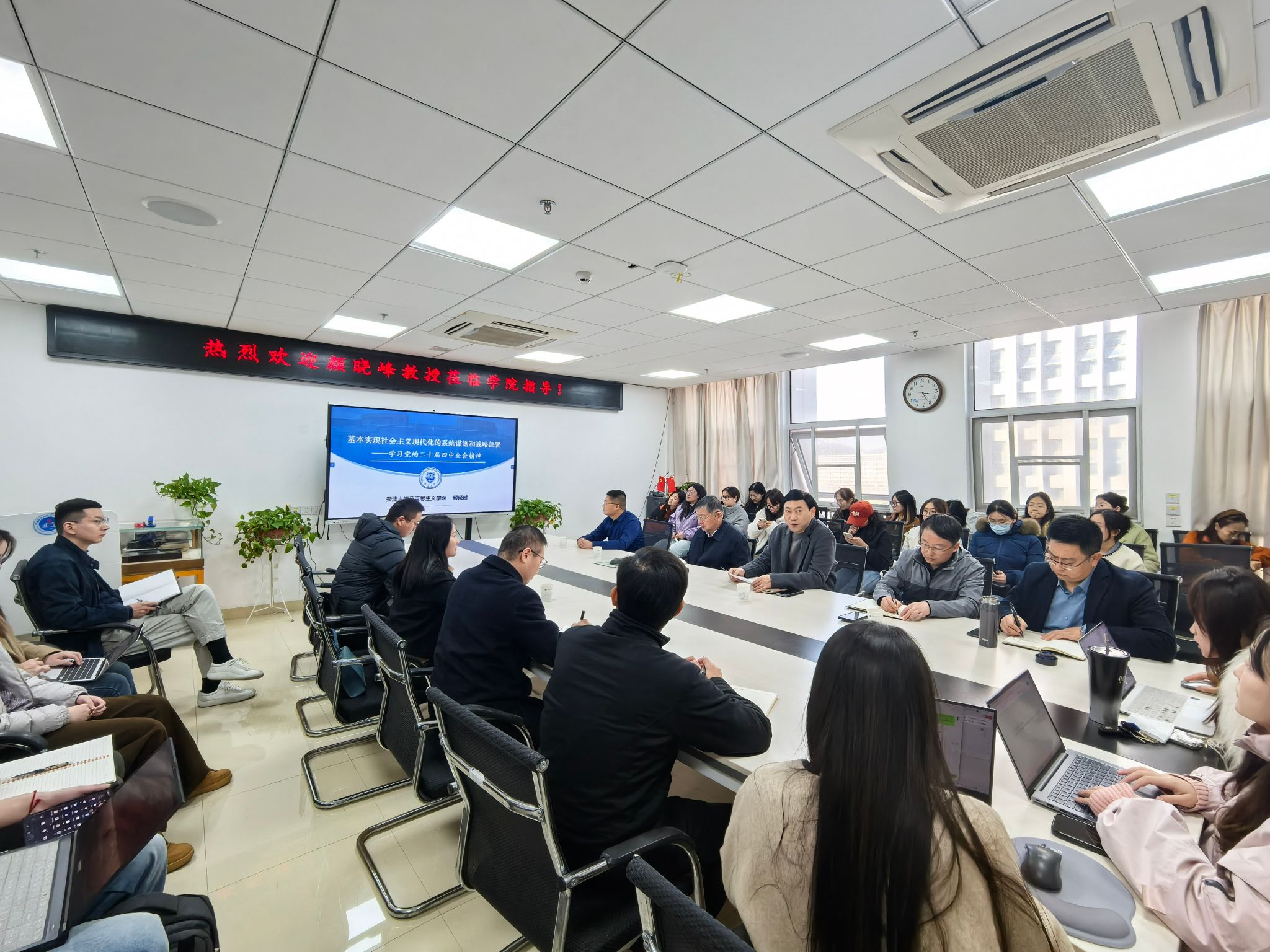 (通讯员:耿学栋)2025年11月28日,天津大学学术委员会委员、十大买球的正规网站院长颜晓峰教授应邀莅临十大买球官网“名家讲坛”,作题为《基本实现社会主义现代化的系统谋划和战略部署——学习党的二十届四中全会精神》《思政课体系的核心内容:从理念到建设》的学术讲座。十大买球官网院长阮一帆主持,党委书记魏海勇,副院长陈军、李海金,党委副书记武彦斌,湖北乡村文化发展研究院院长韩美群,青年教师代表王惠林、何晓龙及在读硕士生、博士生共60余人参会。