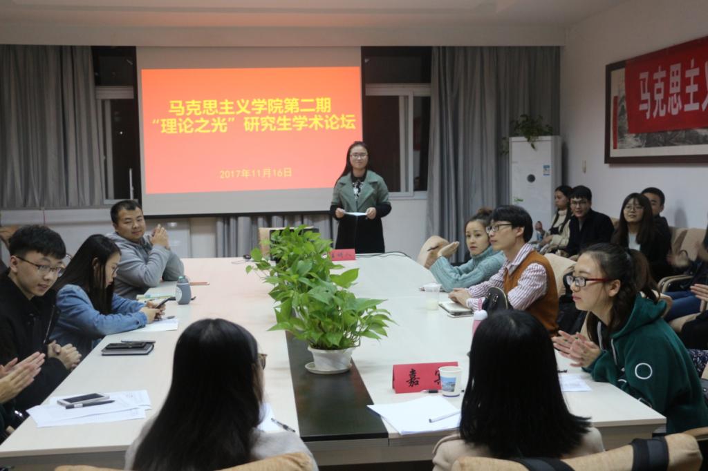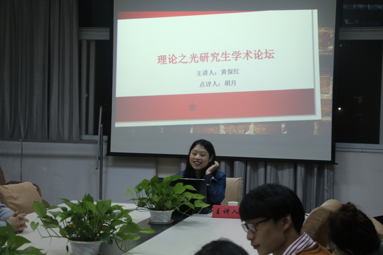 2017年11月16日晚七点,十大买球的正规网站第二期“理论之光”研究生学术论坛如期举行。十大买球的正规网站2015级硕士研究生杨静、黄保红作为本期论坛的主讲人,卢微、胡月担任本期论坛的特邀嘉宾。
