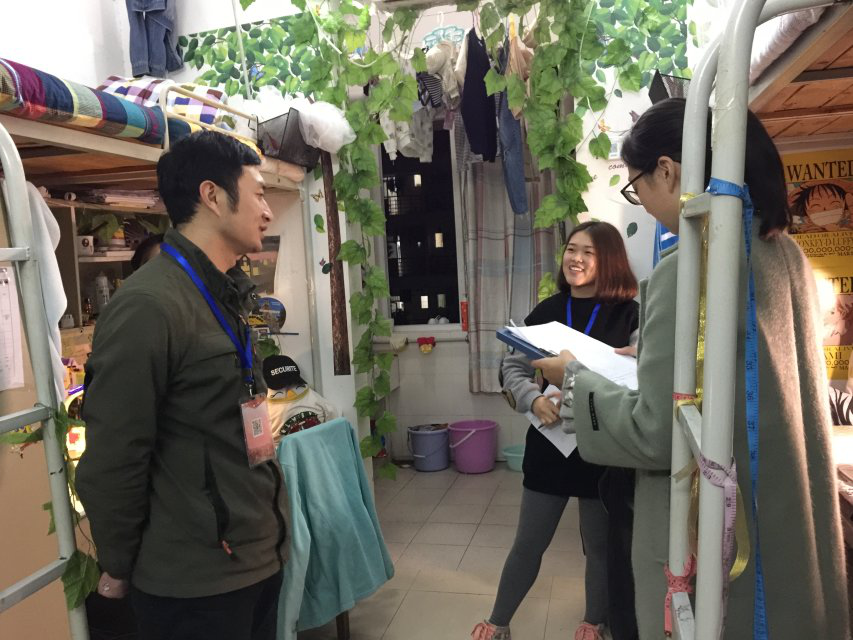 为优化十大买球官网学生的学习生活环境,加强学生的安全防范意识,11月16日晚,马克思主义学院辅导员王艳波老师、兼职辅导员董树婷以及主要学生干部对全体本科生宿舍开展卫生安全大检查。