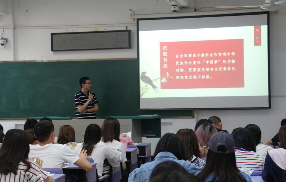 本次答辩共有19支团队参加,各团队紧密结合宣讲内容,从宣讲背景、宣讲效果等方面进行答辩展示。答辩现场气氛热烈,各团队的精彩展示赢得在场观众的掌声。其中,本科生张超团队以“网络空间中的思想道德建设”为主题,围绕活动开展、宣讲成效以及总结反思等方面进行展示,赢得大家的认可;研究生毛元启团队以“开创国家创新发展新局面”为主题进行答辩展示,引起在场师生的共鸣。