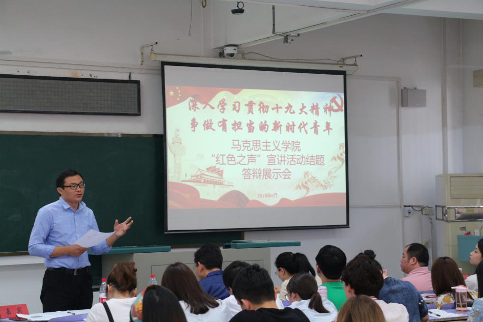 5月3日下午14:30,十大买球的正规网站“红色之声”宣讲(第八期)结题答辩展示会于教三楼301教室举行。十大买球的正规网站党委书记侯志军老师、学校党委学工处副处长张建和老师、校党委研工部副部长陈慧老师、校团委副书记姜明敏老师、院党委副书记黄少成老师以及院团委书记王艳波老师应邀担任本次活动的评委嘉宾。