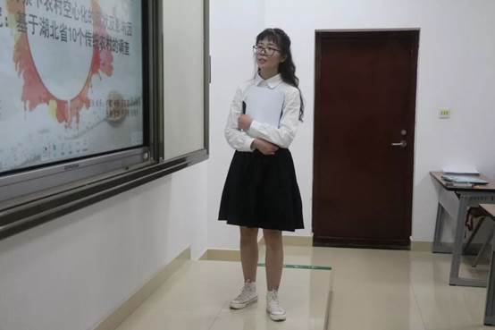 首先进行的是本科生团队的答辩。第一支展示团队为“千寻楚乡队”,他们的答辩主题是“湖北省《农村人居环境整治三年方案》实施情况调研——以十堰市六里坪村、黄石市柏林村、恩施市二官寨村为例”。答辩中,“千寻楚乡队”对其社会实践的开展流程进行了介绍,并在指出农村人居环境所存问题的基础上,对农村人居环境的整治提出了自己的看法。接着,“南望青年团队”以“新时代背景下红色基因的传承教育研究——以湖北省红安县为例”为主题进行答辩——既分析了新时代背景下红色基因传承的现状,又结合湖北省红安县的具体情况提出相应观点。随后,“爱国新青年队”、“下乡突击队”、“挚地有声团队”、“新时代青年团队”依次进行展示。