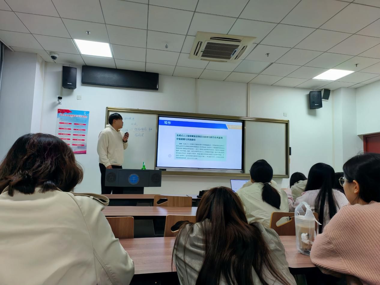 首先,王智博从借鉴方向、观察依据、确定大纲这三个关键环节入手,向与会同学们分享了自己在文献阅读、论文选题与撰写等方面的经验。他特别强调,培养敏锐的问题意识与深入研读经典原著是至关重要的,并激励同学们广泛涉猎相关文献资料,紧跟学科前沿的热点议题,同时夯实基础理论的学习根基。其次,王智博以其发表过的一篇论文为例,通过对论文结构框架的深入分析,进一步深化了同学们对论文写作的认识和理解,也启发了他们在写作中的创新思维。最后,针对论文投稿这一环节,王智博结合期刊的难易程度和导师的偏好,为同学们提供了实用的投稿策略与建议。