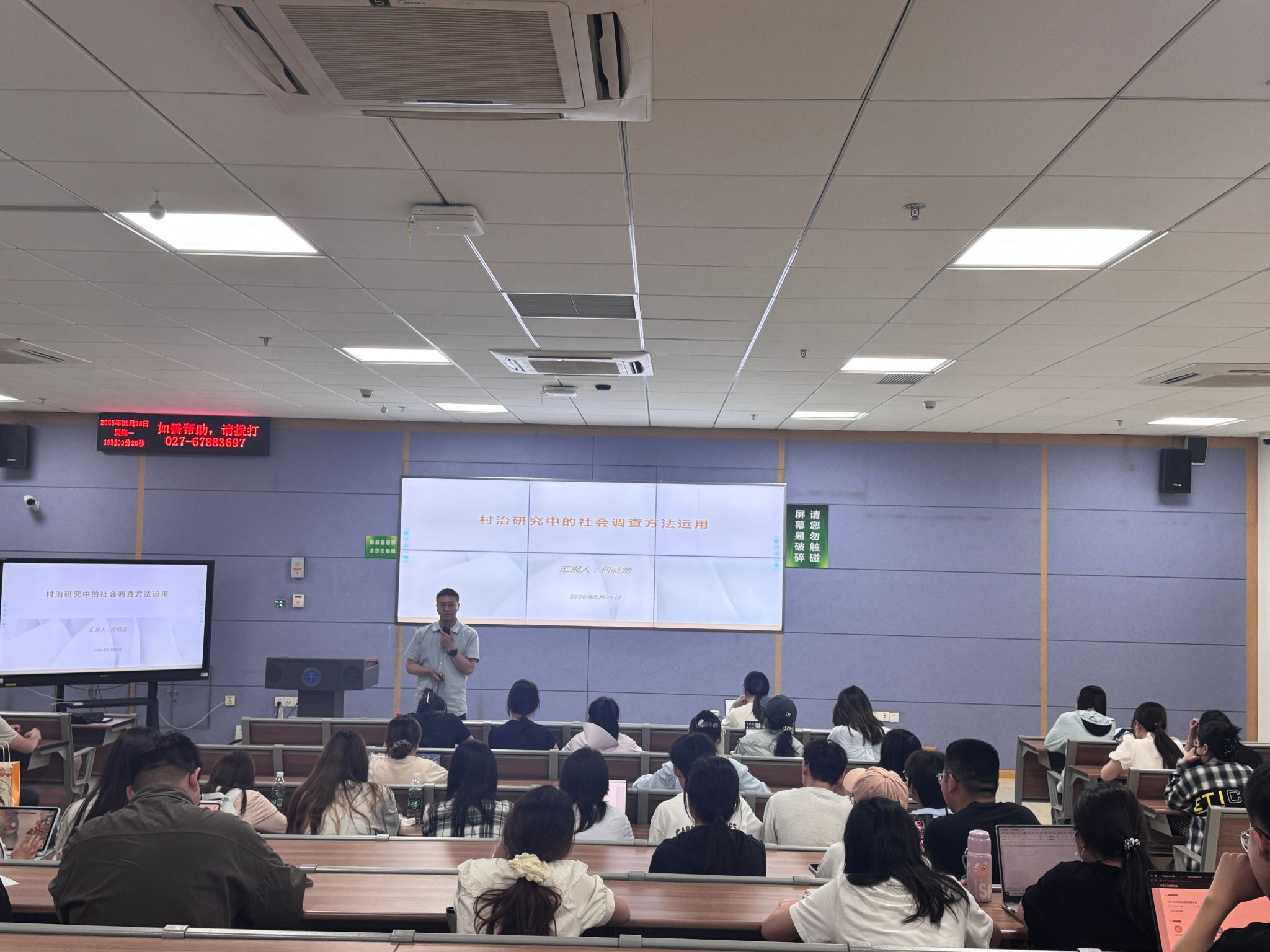 何老师主要围绕社会调查的重要性、社会调查的问题意识、社会调查的方法、乡村调查的实施步骤、乡村调查的成果转化这五个方面进行了系统阐释。首先,何老师开篇指出社会调查的核心在于构建理论与实践的互动闭环,即实践—理论—实践的“大循环”,强调从现实问题中提炼理论,再指导实践。他强调,问题意识应来自社会调查,研究立意需要回应社会实践,避免脱离实际的“伪问题”。其次,针对如何提出有效问题,何老师详细阐述了五个步骤来聚焦“真问题”:一是问题的产生,二是认知框架和观念形成,三是调查者的兴趣和爱好,四是提出问题的陷阱,五是正确的提出问题。他特别强调,研究者需通过扎实的调查验证问题的真实性,提出切实有效的“真问题”。再次,何老师重点剖析了实地调查方法的三阶段操作流程:一是入场阶段,包括转身式入场、闯入式入场、引荐式入场以及官方式入场;二是在场阶段,包括观察、访谈、座谈和参与;三是退场阶段,包括清理与介绍人的关系、清理与报告人的关系以及现场还原。同时,他以“村治调查”为例,展示了如何设计调查提纲,将抽象问题转化为具体调研动作。最后,何老师指出,调查成果的转化是研究价值的关键体现,具体路径包括,一是撰写全面的调查报告,二是以主题撰写随笔,三是转化为学术论文或转化为学术著作,与此同时要注重定性与定量结合。