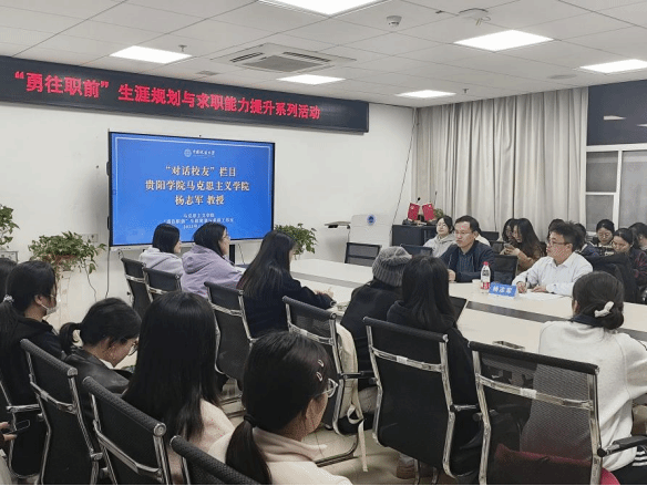 2025年11月7日晚,十大买球的正规网站“勇往职前”生涯规划与求职工作室“对话校友”栏目活动在东区教学楼B座1013举行。贵阳学院十大买球的正规网站教授、博士生导师杨志军受邀分享,30余名硕博研究生参与。学院党委副书记武彦斌主持活动。