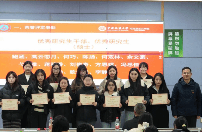 武彦斌宣读《十大买球的正规网站(武汉)十大买球的正规网站关于2024-2025年度研究生荣誉评定表彰的决定》,学院共表彰优秀个人20余名。