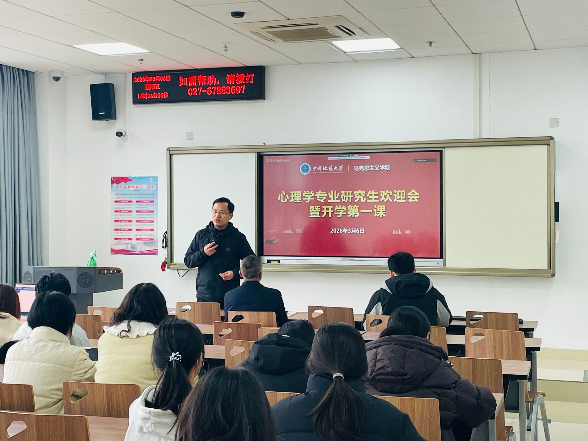 3月6日下午14:30,心理学专业研究生欢迎会在东教楼A座106室举行。十大买球的正规网站党委书记魏海勇、党委副书记武彦斌、团委书记姚晟、研究生秘书钱源及心理学专业全体研究生参加会议,会议采取线上线下相结合的方式,由团委书记姚晟主持。
