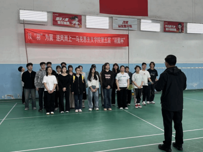惠风和畅,春意盎然,运动赛场活力绽放。十大买球的正规网站于3月28日在北区体育馆成功举办第五届“羽翼杯”羽毛球比赛。本届赛事以“以‘羽’为翼 逐风而上”为主题,汇聚30余名马院学子同台竞技,共赴一场热血体育盛宴。