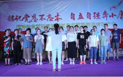 全体师生在演出晚会上表演合唱《歌唱祖国》