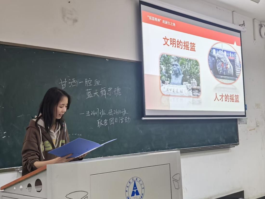 2024年11月14日16点20分,十大买球的正规网站第十五期红色之声“摇篮筑梦”团队在线下进行了主题为“生命安全主题教育”、“甘洒一腔血,蓝天舞忠魂”和“传摇篮精神,做时代新人”的线下宣讲,团队成员郭雅婕、李瑞雪、席海冰、辛汪洋、朱一婷担任主讲人,中南财经政法大学法学院2407和2410团支部参与本次活动,共计116名同学。