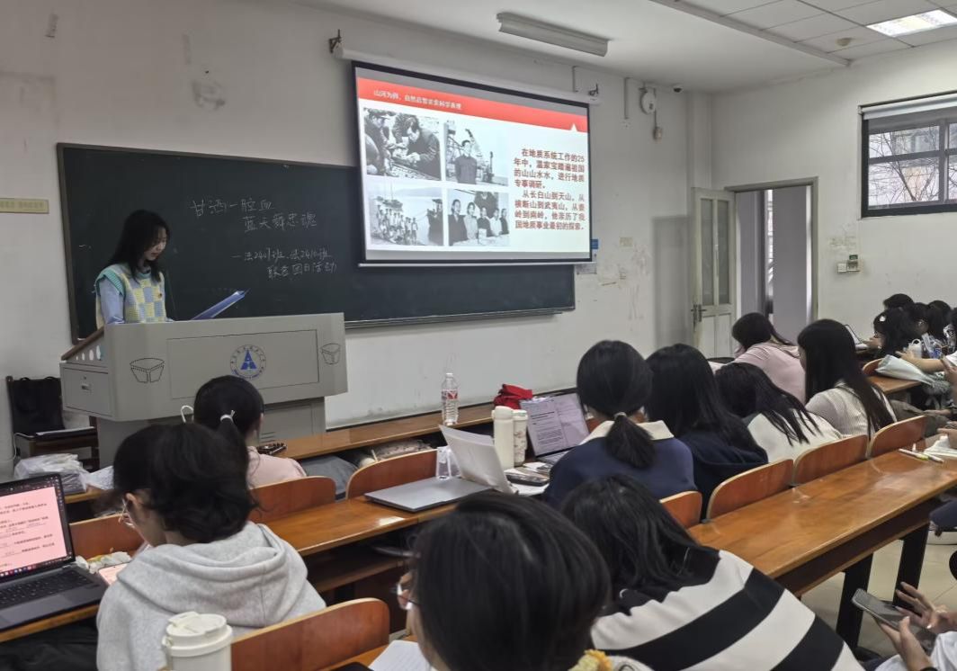 接着,李瑞雪同学开始介绍摇篮精神的的初盛,带领同学们领悟摇篮精神的魅力,摇篮精神哺育着一代又一代地质学子,照亮地质教育的未来,同时摇篮精神鼓舞着无数青年,引领他们探索、超越前方的路,然后,李瑞雪同学继续讲述了摇篮精神的重振延续,随着周口店重建,“摇篮”再次焕发新生,开启了地学人才培养的新征程,在周口店的奋发岁月里,创新的火花与传承的精髓交织融合,共同谱写了地质教育的辉煌篇章。