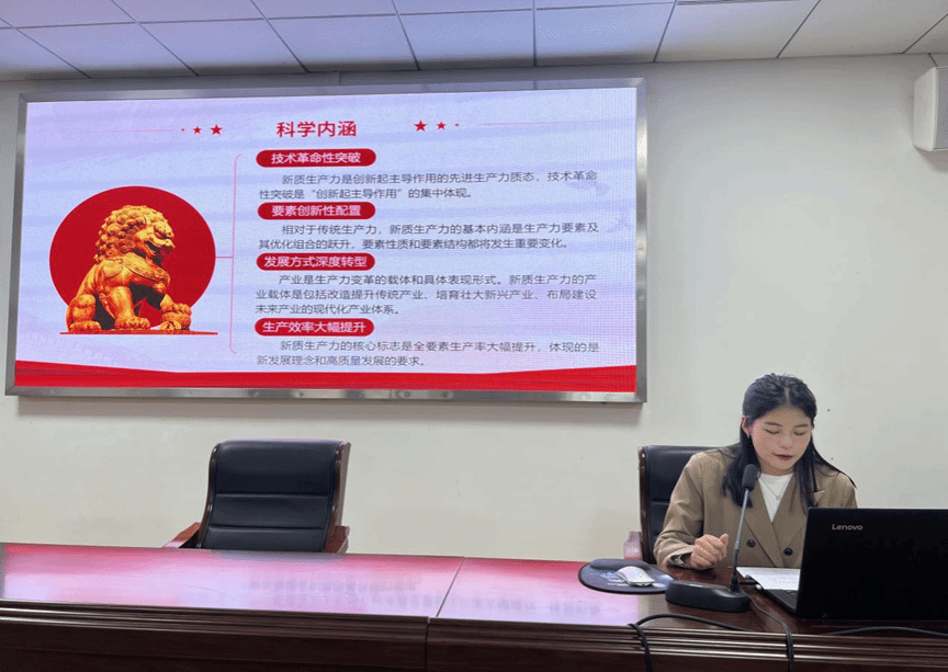 路梦蕊同学带领湖北大学十大买球的正规网站入党积极分子的学员们从理论回归实践,一起学习新质生产力的生动案例。首先,路梦蕊同学提出了新质生产力作为一种先进的生产力质态,正在不断影响着生活的各个领域,例如教育、民生、经济等领域,并且进行了各个领域的举例。然后,路梦蕊同学借助萝卜快跑,智慧家居等两个贴近生活的案例,带领同学们进一步学习新质生产力发展的重要意义。接着,路梦蕊同学具体从新质生产力发展的理论意义和实践意义两个方面进行讲述。在理论层面,新质生产力是马克思主义中国化时代化的创新成果、对马克思主义生产力理论的继承和发展、习近平经济思想的深化和发展。在实践层面,第一,发展新质生产力是建设社会主义现代化强国的战略支撑;第二,发展新质生产力是推动经济社会高质量发展的重要动力;第三,发展新质生产力是提升国际竞争力的战略举措;第四,发展新质生产力是满足人民群众美好生活需要的必然要求。最后,基于新质生产力的重要时代价值,路梦蕊同学带领同学们进一步探讨加快发展新质生产力的实践路径。路梦蕊同学走进生活,结合生活中的各种案例,向同学们讲述了新质生产力在当今时代所具有的深远意义,使新质生产力的理论知识更加的浅显易懂。