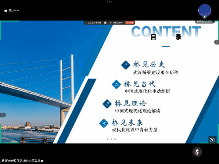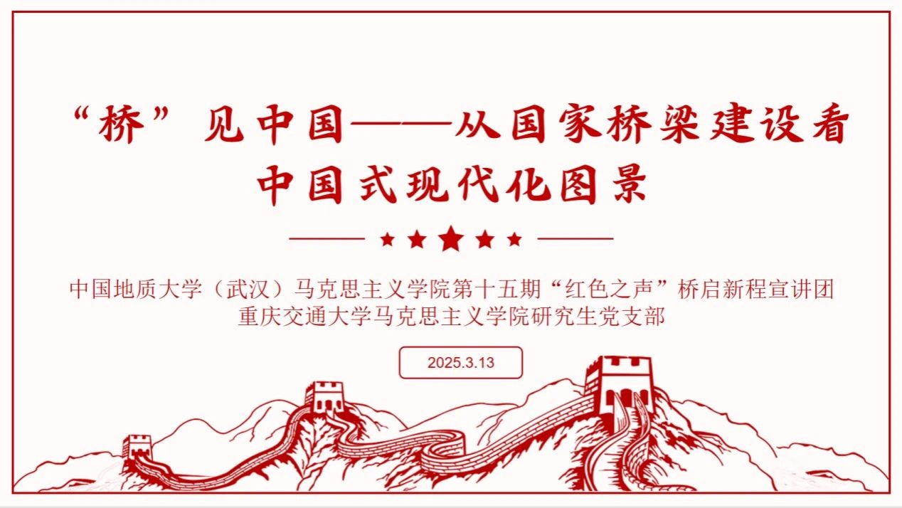 2025年3月14日,由重庆交通大学十大买球的正规网站研究生第二党支部与桥起新程宣讲团联合主办的“桥见中国——从我国桥梁建设看中国式现代化图景”主题线上宣讲会顺利举行。本次活动通过腾讯会议平台开展,重庆交通大学65师生参与,共同聆听桥梁建设的发展历程,激发青年学子投身国家建设的热情。本次主讲人由唐姣担任。