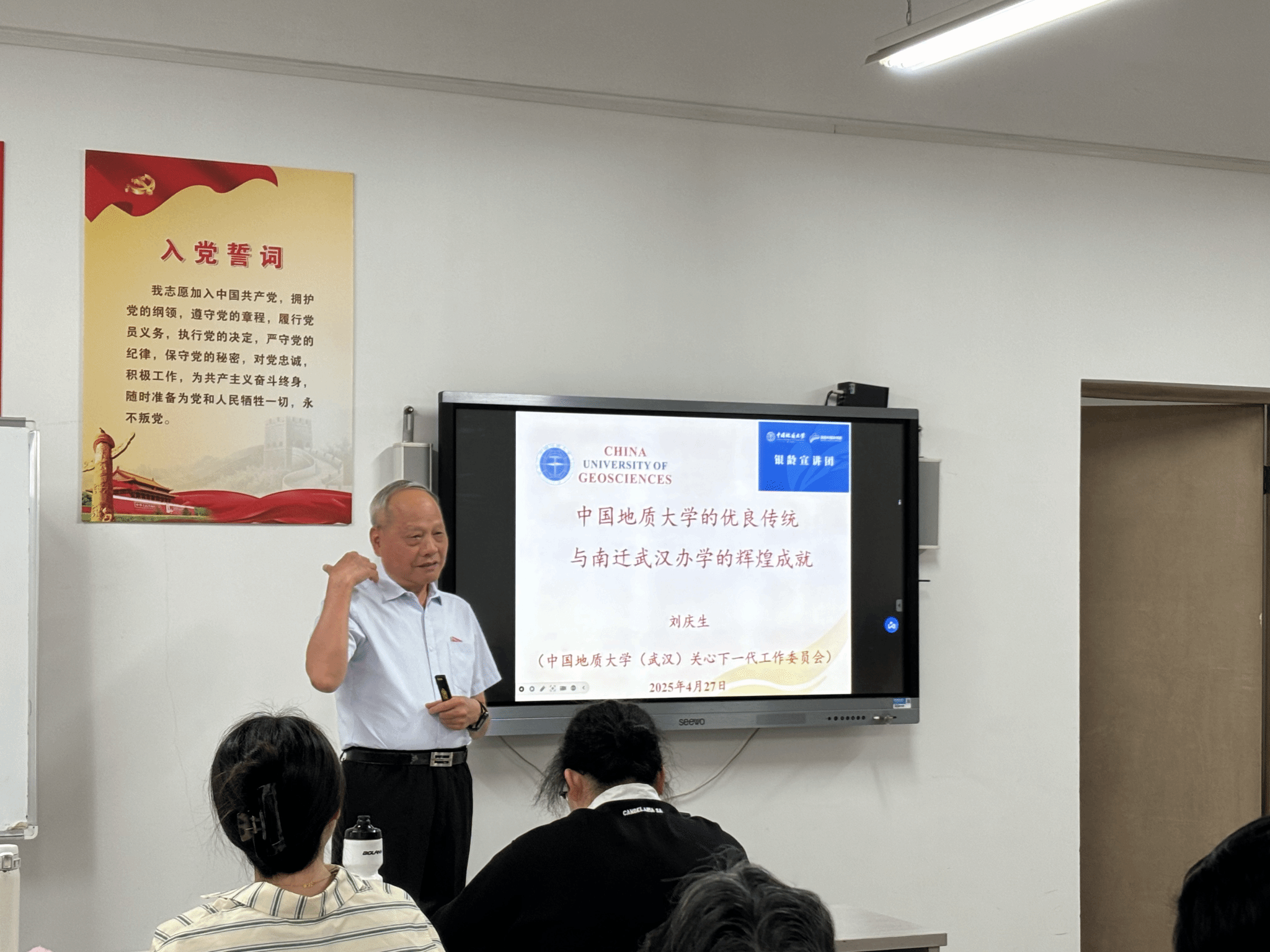 随后,十大买球的正规网站关工委委员、“银龄宣讲团”成员刘庆生老师深情讲述十大买球的正规网站的优良传统以及南迁武汉办学的辉煌历程。从地质先驱“以献身地质事业为荣”的誓言,到南迁时期师生共克时艰的奋斗故事,刘老师用鲜活的历史案例诠释了地大人“艰苦朴素、求真务实”的精神内核,现场听众无不动容。
