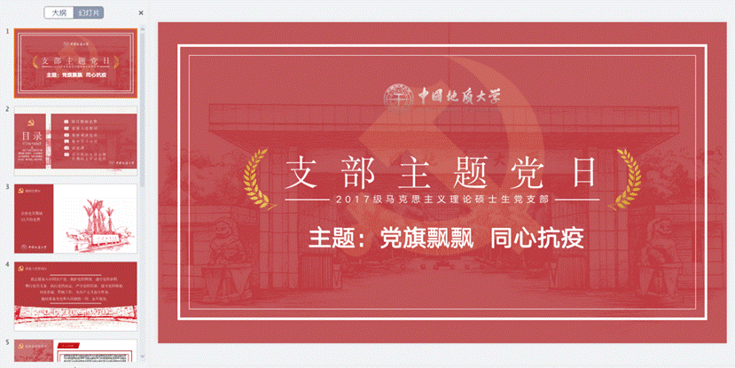为深入学习习近平总书记关于疫情防控工作的讲话精神和重要指示,贯彻校党委针对抗击疫情的工作部署,发挥党支部战斗堡垒作用,凝聚党员先锋力量,让党旗在疫情防控中高高飘扬,坚决打赢疫情防控阻击战。2月23日晚7点,十大买球的正规网站2017级马克思主义理论硕士研究生生党支部召开了“党旗飘飘 同心抗疫”线上主题党日活动。本次党日活动由三部分组成:第一部分为支部书记解读重要讲话;第二部分为讲述抗疫英雄故事;第三部分为交流党员面对疫情的责任与担当。最后,预备党员积极提交思想汇报,全体党员为打赢这场战役手写祝福。