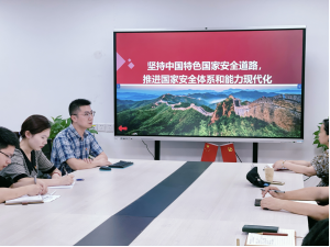 大会第二项,由学院孙文沛副院长讲授《坚持中国特色国家安全道路,推进国家治理体系和能力现代化》党课。孙院长强调,国家安全是民族复兴的根基,是人民安居乐业的保证,当今世界面临百年未有之大变局,我国面临的战略机遇与风险挑战并存他结合习近平总书记对国家安全方面的重要论述,指出目前各地区要建立健全党委统一领导的国家安全工作责任制,强化维护国家安全责任,守土有责、守土尽责在以习近平同志为核心的党中央坚强领导下,中国走出了一条中国特色国家安全道路,开创了维护国家安全的崭新局面。这条道路以总体国家安全观为统领,契合新的时代条件下维护国家安全的紧迫要求,彰显鲜明中国特色,为实现国家长治久安和人民安居乐业、实现中华民族伟大复兴提供了坚强安全保障。