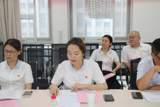 思想政治理论课第二党支部书记李蔚然领学“第一议题”,分享了学习习近平在文化传承发展座谈会上发表的重要讲话的感悟,主题为《担负起新的文化使命努力建设中华民族现代文明》。她指出,习近平总书记的重要讲话为担负新的文化使命指明了前进方向,新征程上,要深入贯彻落实总书记重要讲话精神,坚定文化自信、秉持开放包容、坚持守正创新,共同努力创造属于我们这个时代的新文化。