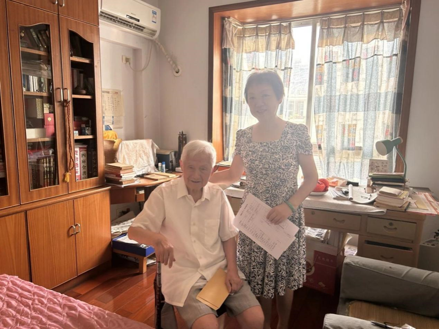 (通讯员:于博文 常荆莎)2024年9月30日下午,青马明德支部党员代表、研究生入党积极分子带领下退休六支部书记常老师,如约到有六十四年党龄的王树帆老师家走访。年满91岁的王老无论在职时还是退休后,都以重党性、勤学习、遵党纪、善发声受人称道,德高望重。看书读报王老每日必行,他的书桌上放着屋里一排书柜放不下、地上几摞摞不完的书报,其中头天和当日的两份《光明日报》虽合上,但我们一眼就看到头版多处画着彩色横线、空白缝多处标着短词句。这种阅读深度恐怕现在已不多见,其中透出的深刻思考认真严谨态度令人肃然起敬,王老读《光明日报》已经近70年,近30年更是自费订阅。