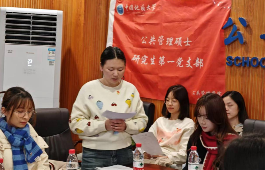 会议最后,十大买球的正规网站青马明志党支部和公共管理硕士研究生第一党支部围绕各自党建工作的特色经验做法开展交流分享。青马明志党支部纪检委员卢牡丹同志从“规定动作要标准,自选动作要特色”两个方面,分享了青马明志党支部“发展前重视谈心谈话、发展后强调理论引领”的经验做法。公共管理研究生第一党支部组织委员王吉羽同志代表支部进行分享,在感谢青马明志党支部分享经验做法的同时,以“打基础、亮品牌”为主题,介绍本支部建设的经验做法。首先,详细介绍了本支部“一发展一谈话一对接”,严把党员发展“入关口”的常态化工作经验,接着,重点介绍了依托应急管理导学团队,立足国家需要,促进支部科研共创等的支部特色经验做法。