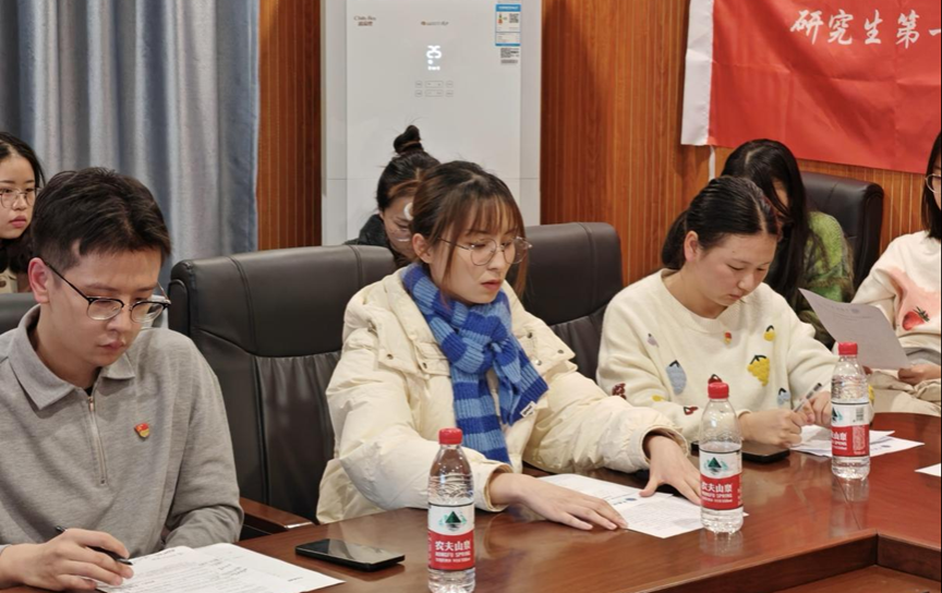 公共管理硕士研究生第一党支部童贺银同志带领大家重温党章,学习党的二十届三中全会精神、全国教育大会精神和促进高质量充分就业精神。童贺银同志结合应急管理科研实际指出,应急专业同学应提高防范化解风险能力,促进新时代应急能力高质量发展。