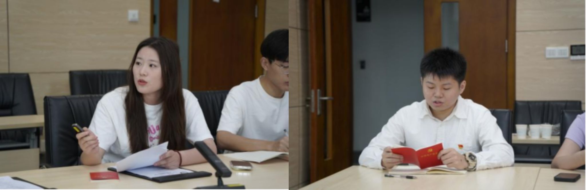 “张国旗班”党支部张萍萍领学习近平总书记在庆祝中华全国总工会成立100周年暨全国劳动模范和先进工作者表彰大会上的讲话。“红色之声”党支部陈扬结合个人经历学习习近平总书记给谢依特小学戍边支教西部计划志愿者服务队队员的回信精神和在《求是》发表重要文章《激励新时代青年在中国式现代化建设中挺膺担当》精神。