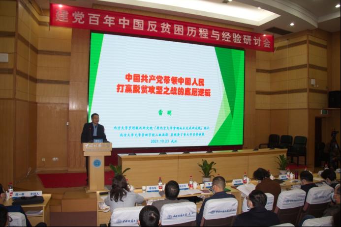 10月23日,建党百年中国反贫困历程与经验研讨会在南望山校区迎宾楼举行。国家乡村振兴局中国扶贫发展中心主任黄承伟,湖北省社会科学联合会党组书记、常务副主席喻立平、副主席安向荣,华中师范大学资深教授徐勇,校党委书记黄晓玫,公共管理学院院长胡守庚,科学技术发展研究院副院长郭海湘,十大买球的正规网站院长阮一帆,来自北京大学、中国人民大学、北京师范大学、中国农业大学、西安交通大学、华中师范大学、华中农业大学和中南财经政法大学等的专家学者,《江汉论坛》、新华社、《光明日报》、《中国社会科学报》等媒体以及我校十大买球的正规网站师生代表150余人参加研讨会。