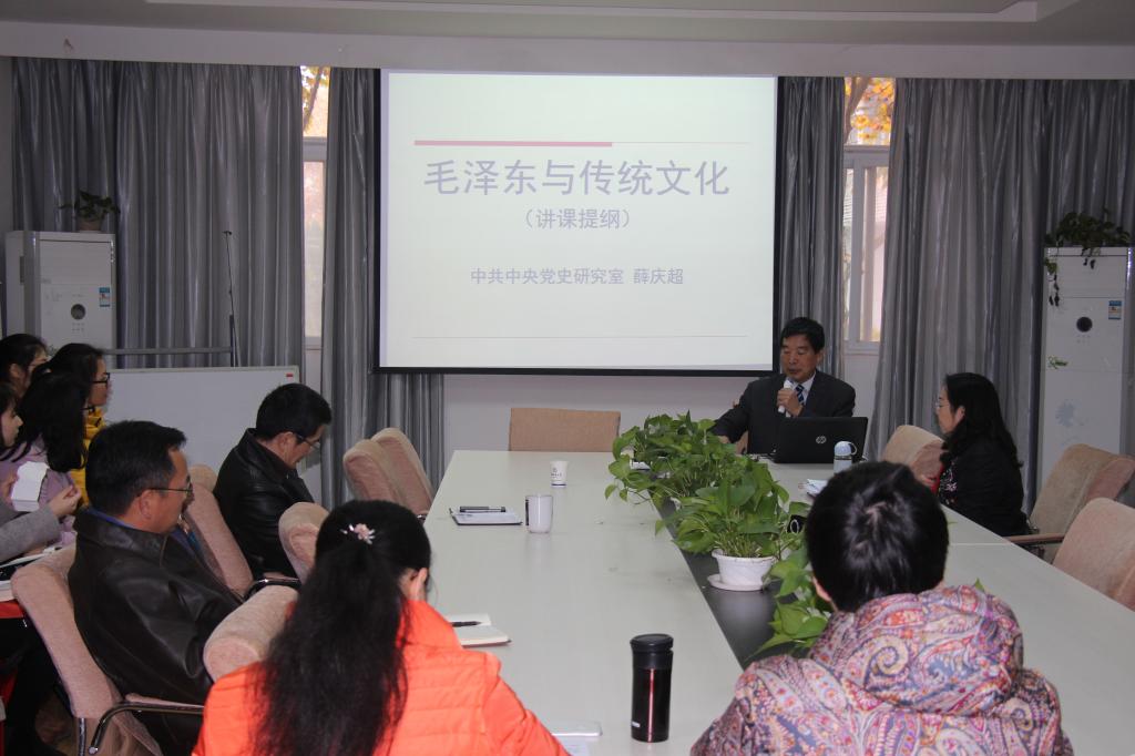 11月30日至12月5日,中共中央党史研究室原宣传教育局副局长、我校讲座教授薛庆超老师来校做学术讲座并与十大买球官网师生交流。薛庆超教授先后为十大买球官网师生作了《毛泽东与中国传统文化》、《如何利用文献档案资料撰写论文》、《如何申报国家级项目》等学术报告,为学校党委理论学习中心组作了《十大买球的正规网站学科建设与发展》的专题报告,受到学校师生和领导好评。