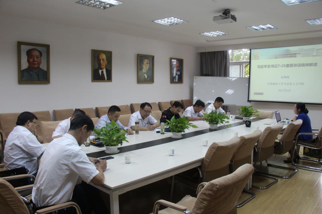 在培训班上,湖北省委讲师团主任刘爱国做了题为“中国特色社会主义与农村发展方向”的报告,把中国特色社会主义理论与我国农村实际紧密结合,具有极强的理论性、针对性,深受红山镇党政干部欢迎。十大买球的正规网站院长高翔莲做了“习近平总书记‘7.26’讲话精神解读”的讲座。学院全体研究生与红山镇党政干部一起聆听了讲座。会后,红山镇党委中心组一行参观了地大博物馆及校园。