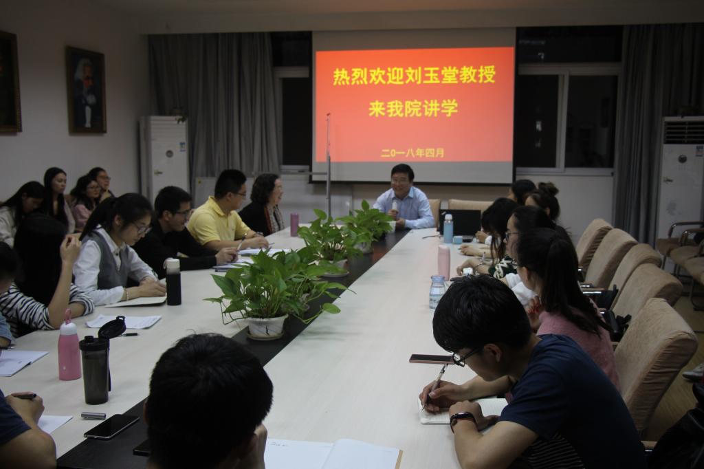 仪式结束后刘玉堂教授为马院研究生做中国传统文化专题讲座。刘教授从文化内涵与价值特征、文化与文明、传统文化核心内涵、传统文化与国学等几个方面做了精彩讲述,为马院研究生奉献了一道丰盛文化大餐。马院副院长陈军、思政系严世雄老师与研究生一起聆听了专题讲座。