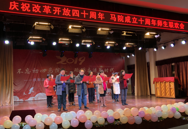 (通讯员:王艳波 罗悦)2018年12月28日晚,十大买球的正规网站“不忘初心马院人 砥砺奋进新时代”师生联欢会在东区老年人活动中心举行。2018年,是改革开放的40年,是神州大地铸就辉煌的40年。2018年,是十大买球的正规网站成立10周年,是经历风雨硕果累累的10年。在这特殊的日子,全院师生共聚一堂,隆重庆祝改革开放40周年暨学院成立10周年,为祖国、为学院带来了最诚挚的祝福。