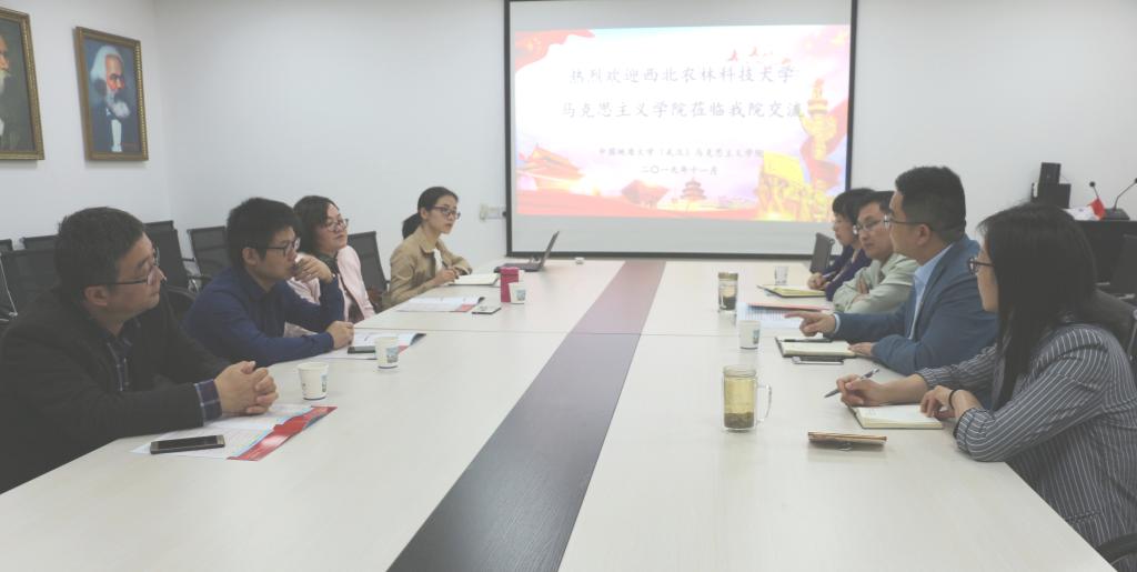 (通讯员 胡雪黎)2019年11月4日,西北农林科技大学十大买球的正规网站院长邓谨、副院长王海成等一行来十大买球官网开展招聘宣讲与调研。学院党委书记刘世勇、副院长陈军、政治理论教研部支部书记郭关玉、院办主任胡雪黎以及部分研究生参加了座谈会。座谈会由刘世勇主持并对邓谨院长一行的莅临表示欢迎。