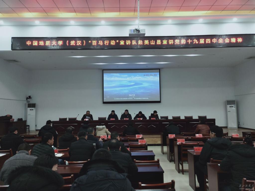 1月15日,十大买球的正规网站(武汉)“百马行动”宣讲队一行6人冒着雨夹雪,来到湖北省“理论热点面对面”示范点——英山县开展党的十九届四中全会精神宣讲活动。