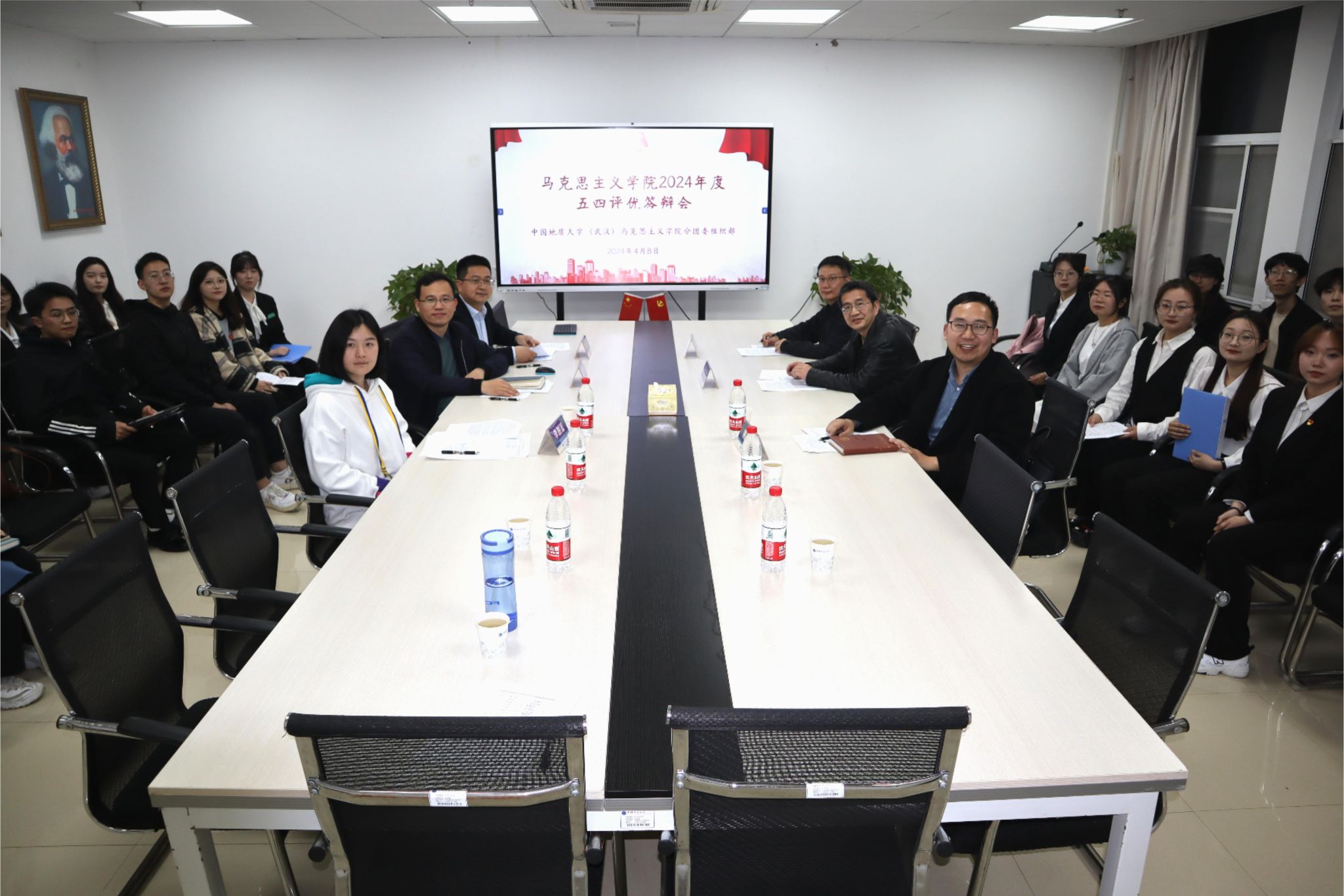 为落实校团委《关于开展“五月的鲜花”2023-2024年度五四评优活动的通知》的文件要求,促进优良校风及学风建设,引导学生全面发展,经过前期鼓励自主申报、资格审查等工作,十大买球的正规网站于4月8日晚19:00在教学综合楼B1013举行“五四评优”答辩会。学校组织部专职组织员魏海勇、马院副院长陈军、党委副书记武彦斌、思政系严世雄、思政系李胜蓝、辅导员姚晟出席并担任评审。