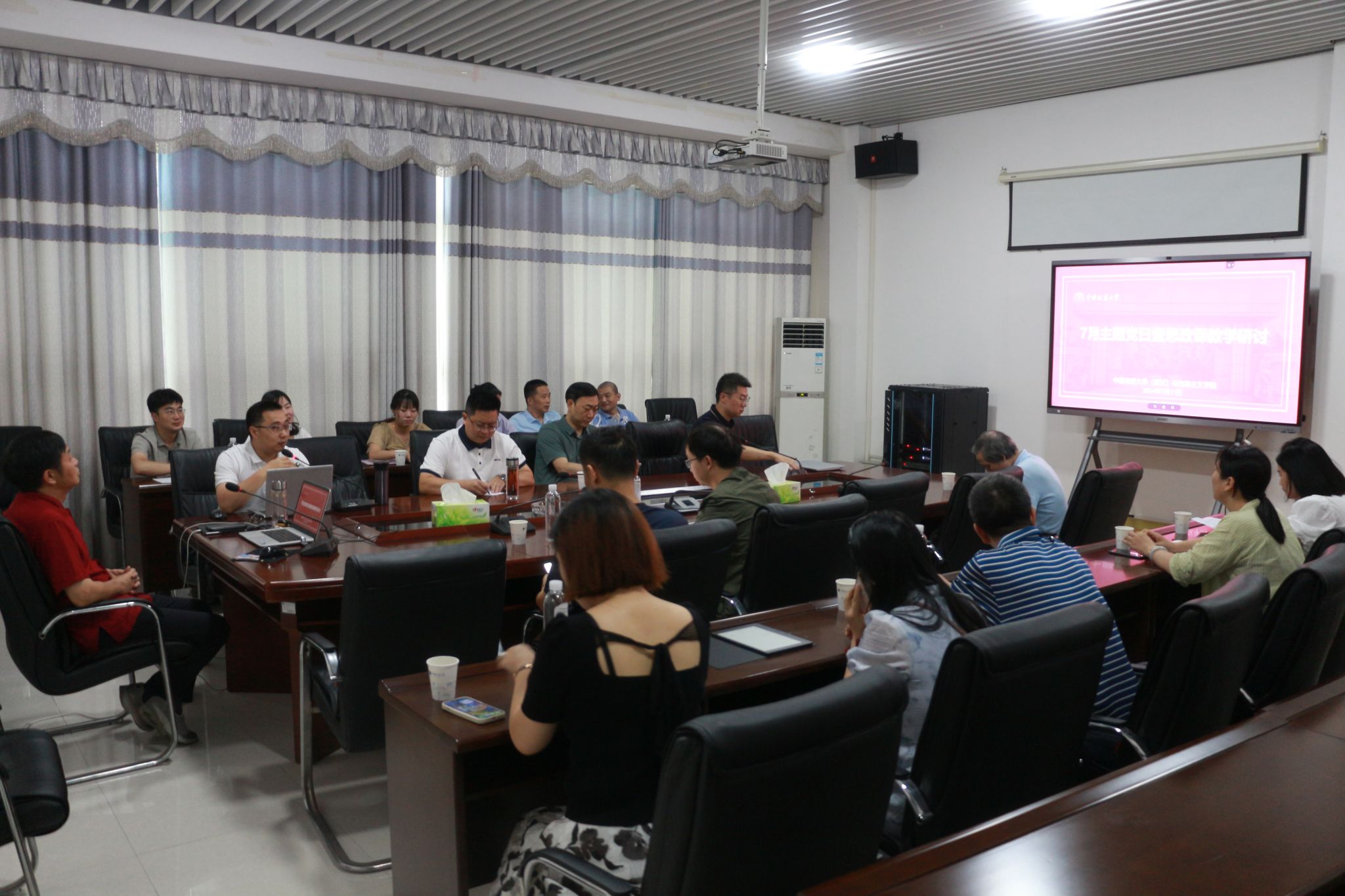 召开思政课建设研讨会。本次会议分专题讲座和研讨交流两个环节,专题讲座由学院党委书记汪再奇主持,教学研讨会由副院长孙文沛主持。
