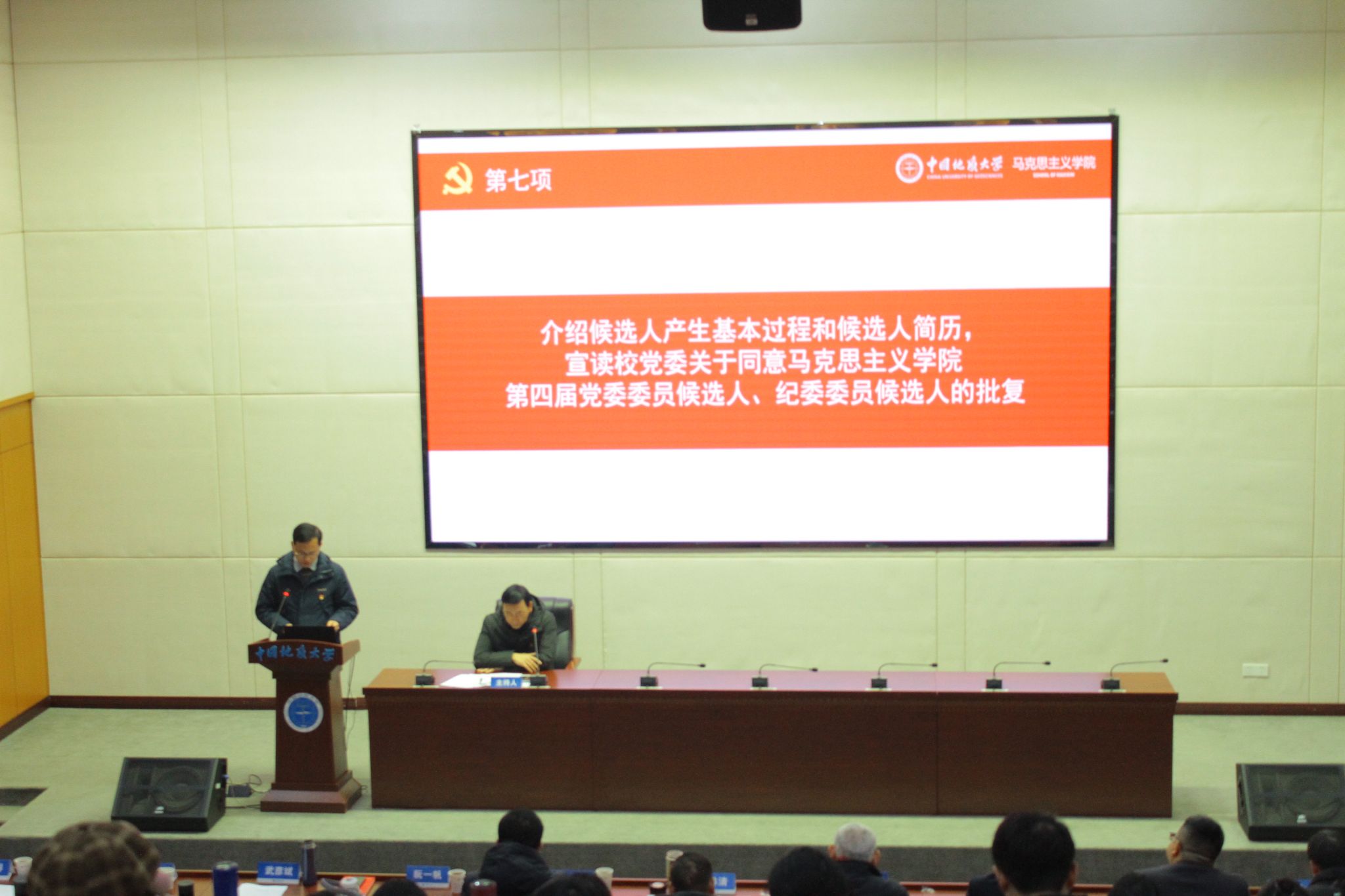 党委组织部副部长张建华宣读了《学校党委关于中共十大买球的正规网站(武汉)十大买球的正规网站委员会召开第四次换届选举大会的批复》。