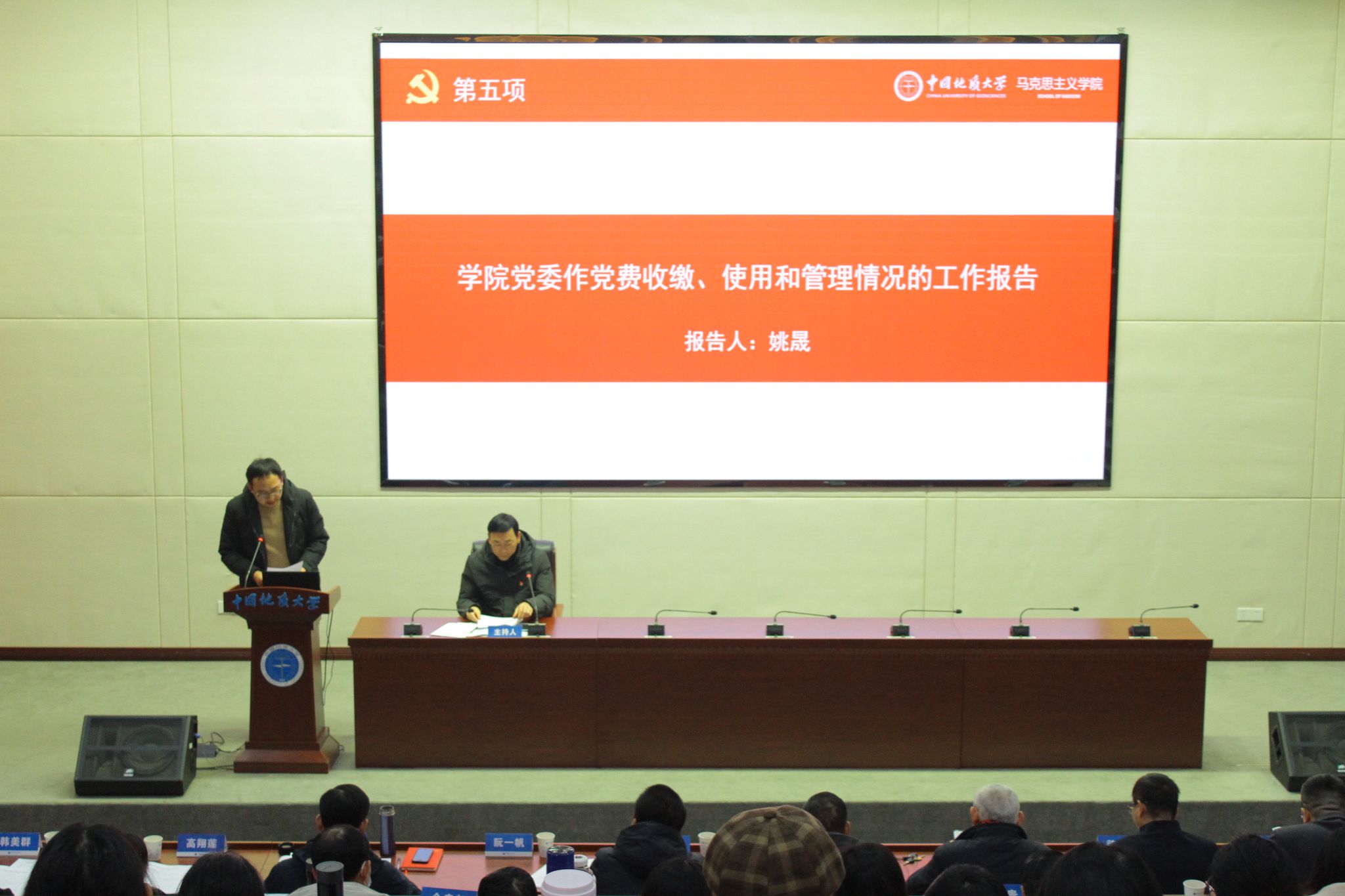 组织委员姚晟代表学院党委报告了中共十大买球的正规网站(武汉)十大买球的正规网站委员会党费收缴、使用和管理情况。