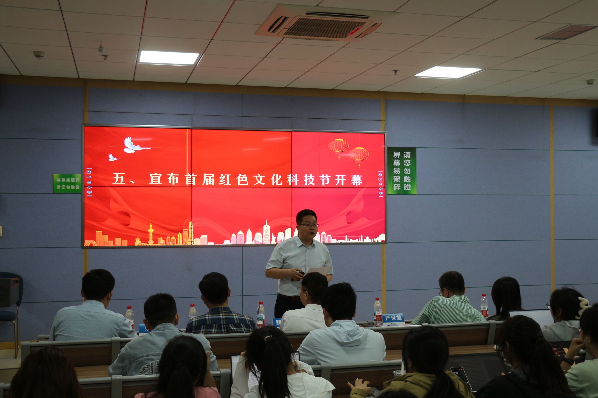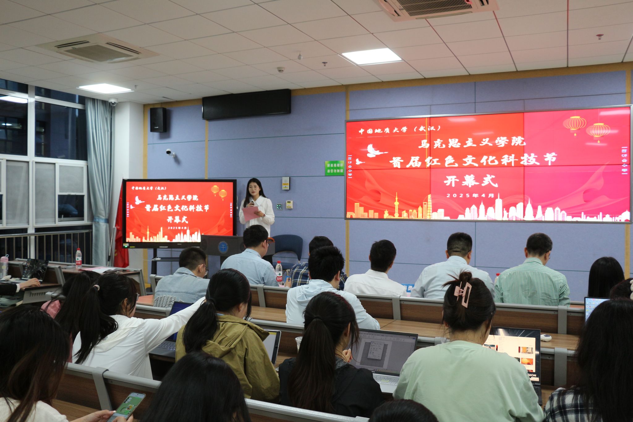 陈军鼓励广大同学弘扬马克思主义学风,不断增强问题意识、学术意识和学科意识,在学术研究中提升自己。他代表学院宣布:首届红色文化科技节开幕!