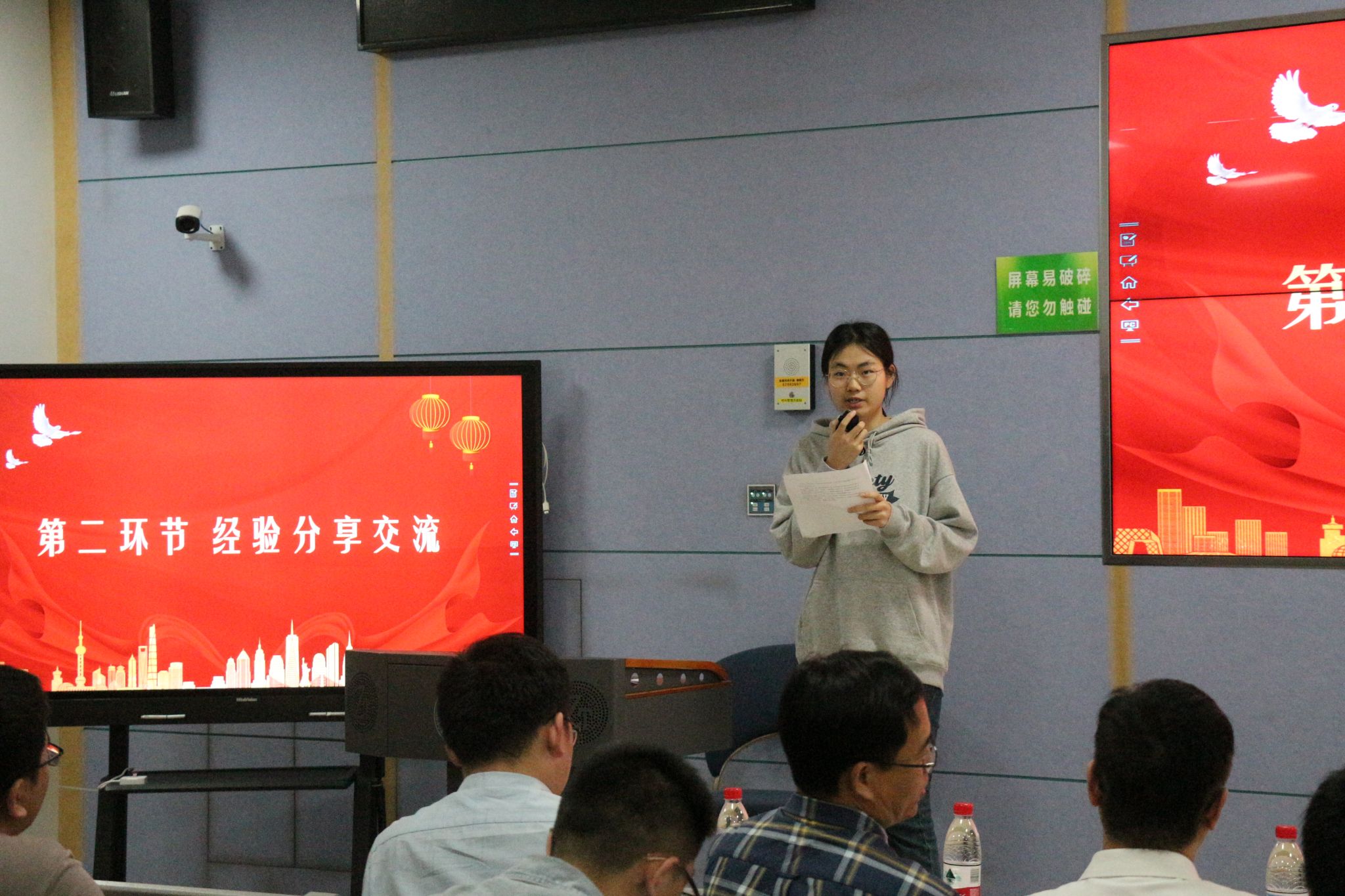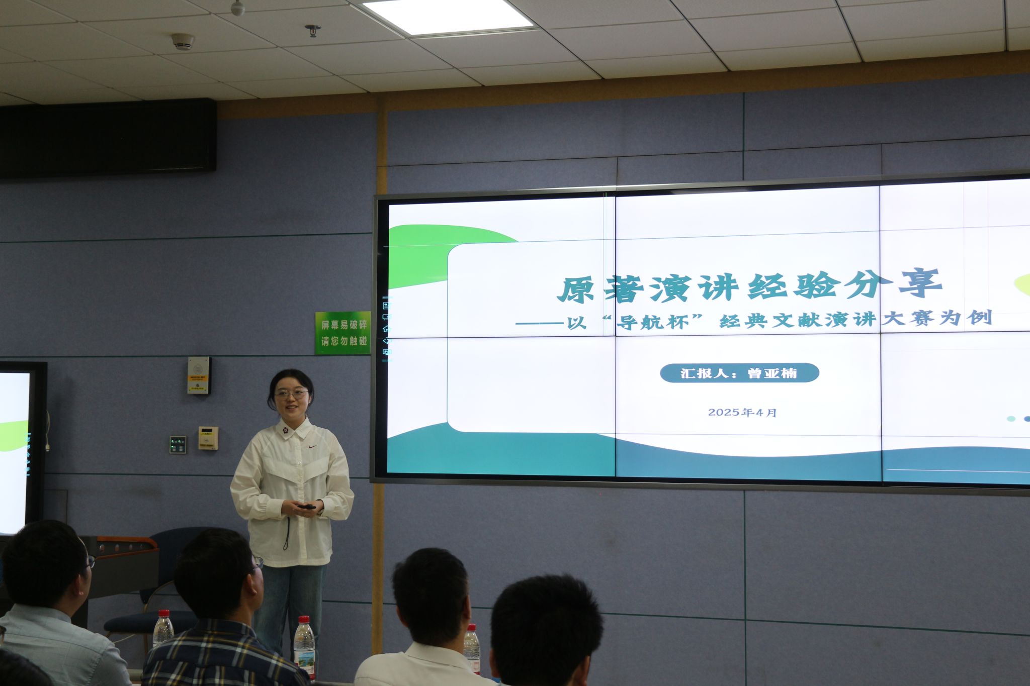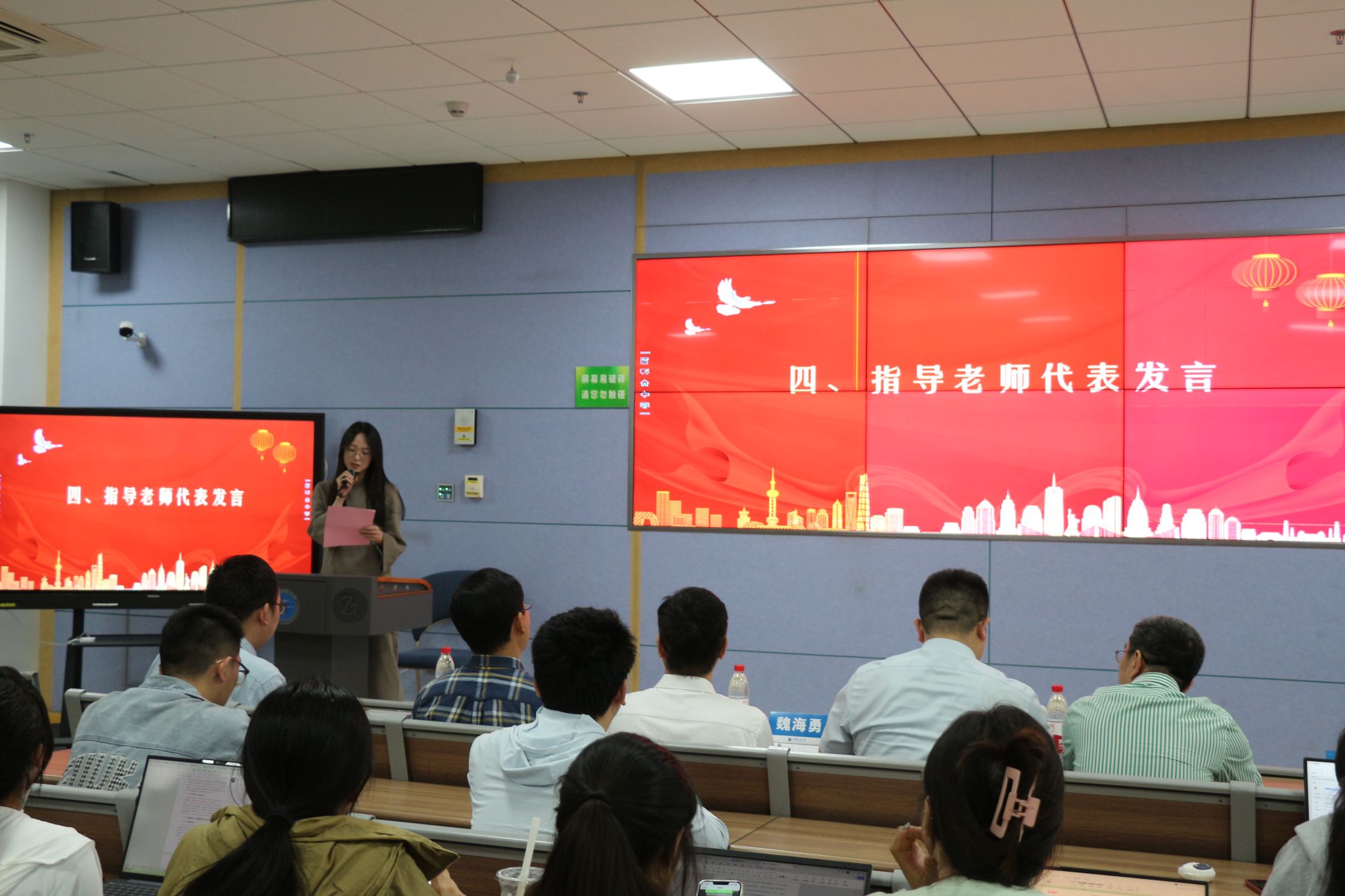 李蔚然作指导老师代表发言。她从选题、组队以及与指导老师沟通等方面与大家分享经验,鼓励大家勇敢迈出第一步,积极参与相关文化科技活动。