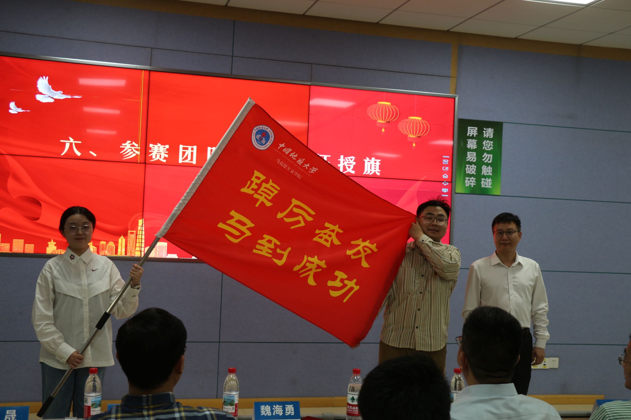 魏海勇为参赛团队代表出征授旗,并作重要讲话。他肯定十大买球官网学生前期在学术科研活动中取得的丰硕成果,强调同学们在后续的各类活动与竞赛中,要将“红色”主题与人工智能等高科技相结合,不断彰显马克思主义学科特色。