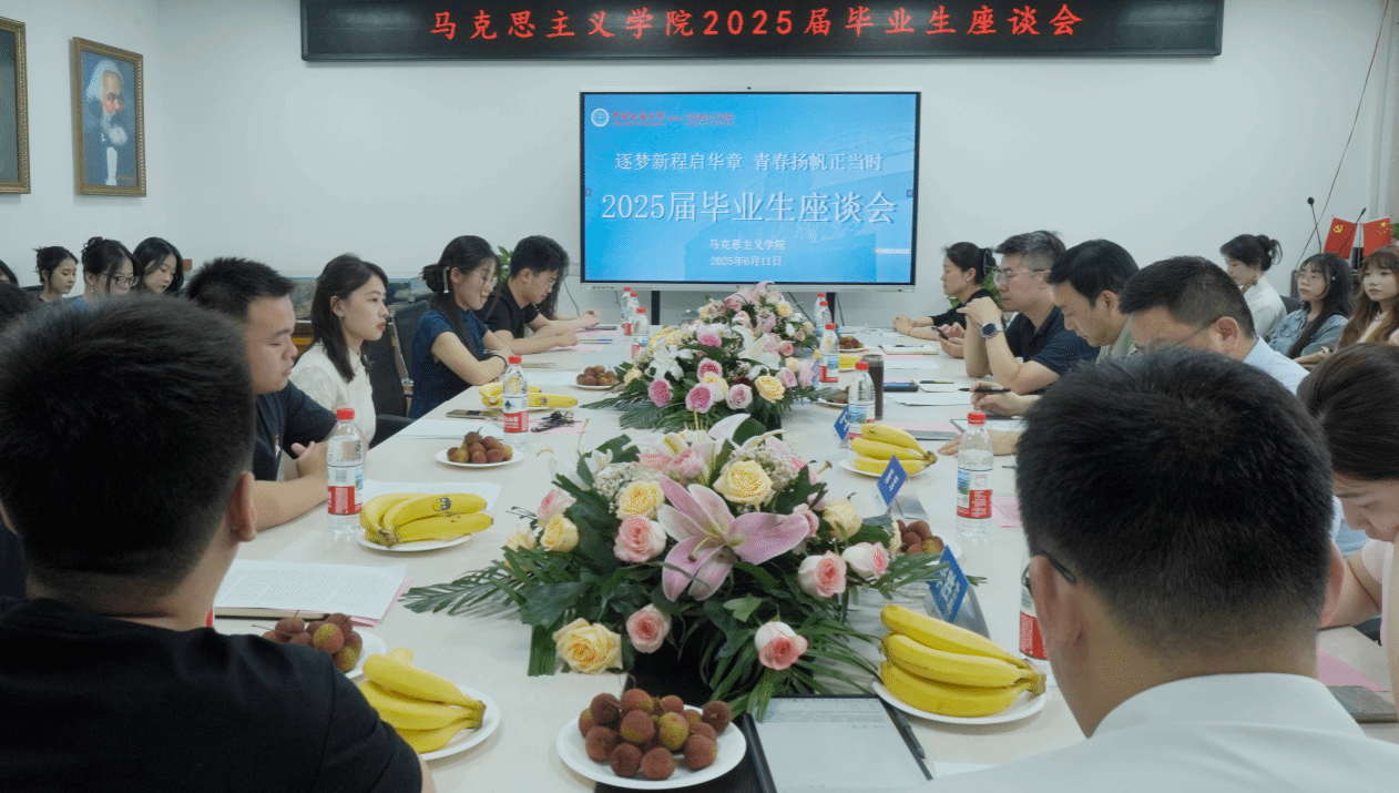6月11日下午,十大买球官网2025届毕业生座谈会在东区综合楼B1013顺利召开。院长阮一帆,副院长陈军、孙文沛,党委副书记武彦斌,思政系主任李胜蓝,毕业班班主任罗丽娅,辅导员姚晟以及30余名本硕博毕业生代表齐聚一堂,共话大学生活与未来。座谈会由姚晟主持。