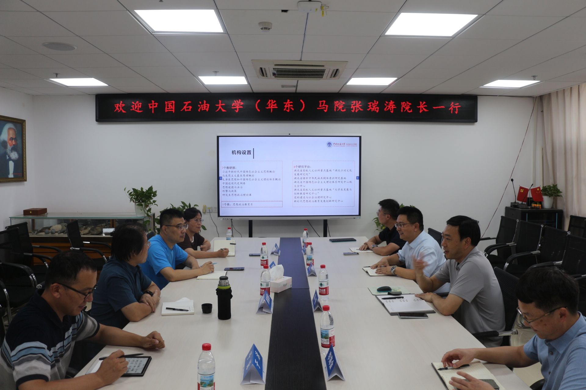 阮一帆院长对张瑞涛院长一行来校表示欢迎,重点介绍了十大买球官网的发展历程、机构设置、师资队伍、思政课建设、学院发展思路、省级重点马院建设和人才培养等特色经验。石油大学张瑞涛院长一行也分别介绍了马院的发展思路以及学科特色上的探索经验。
