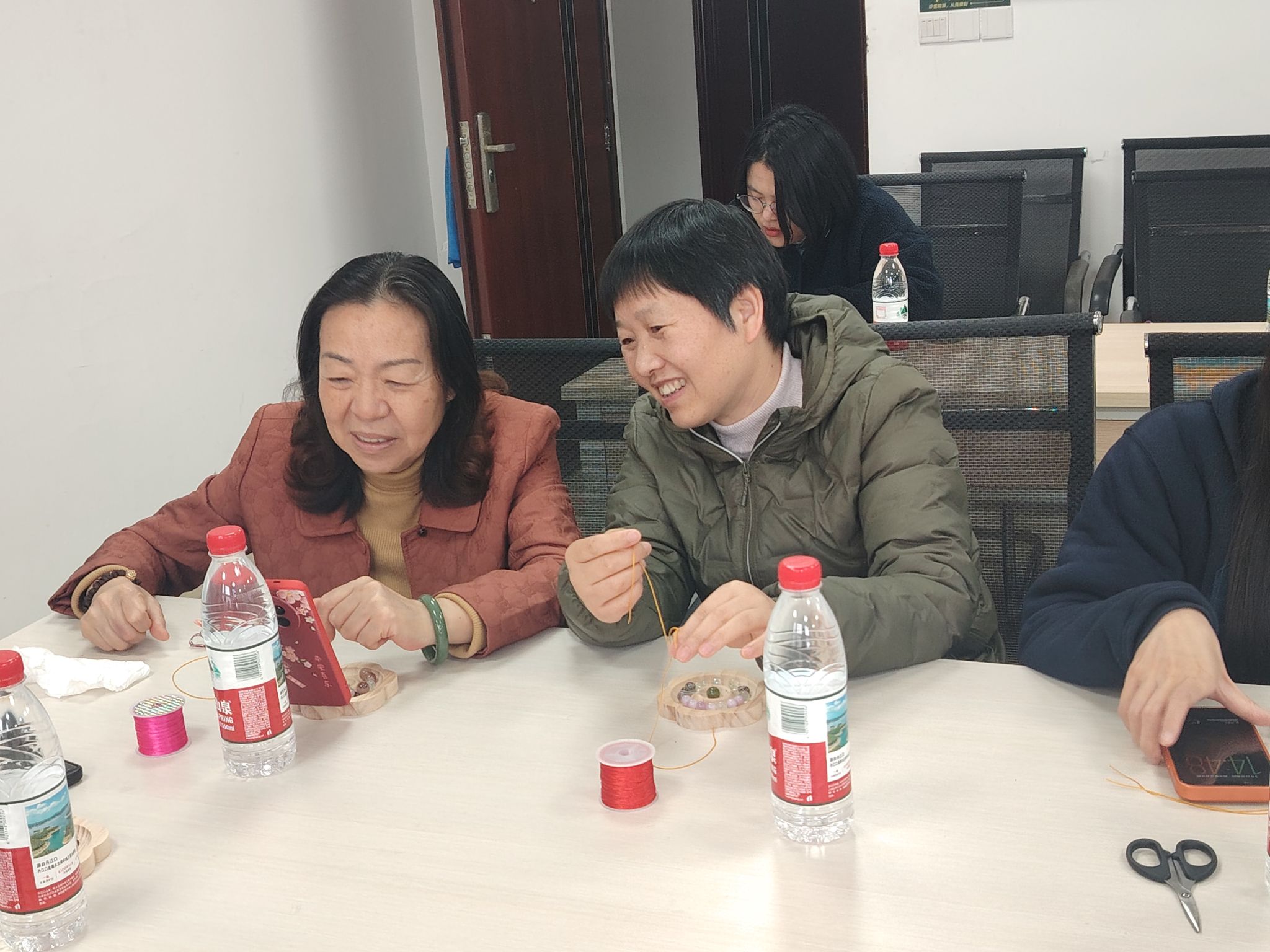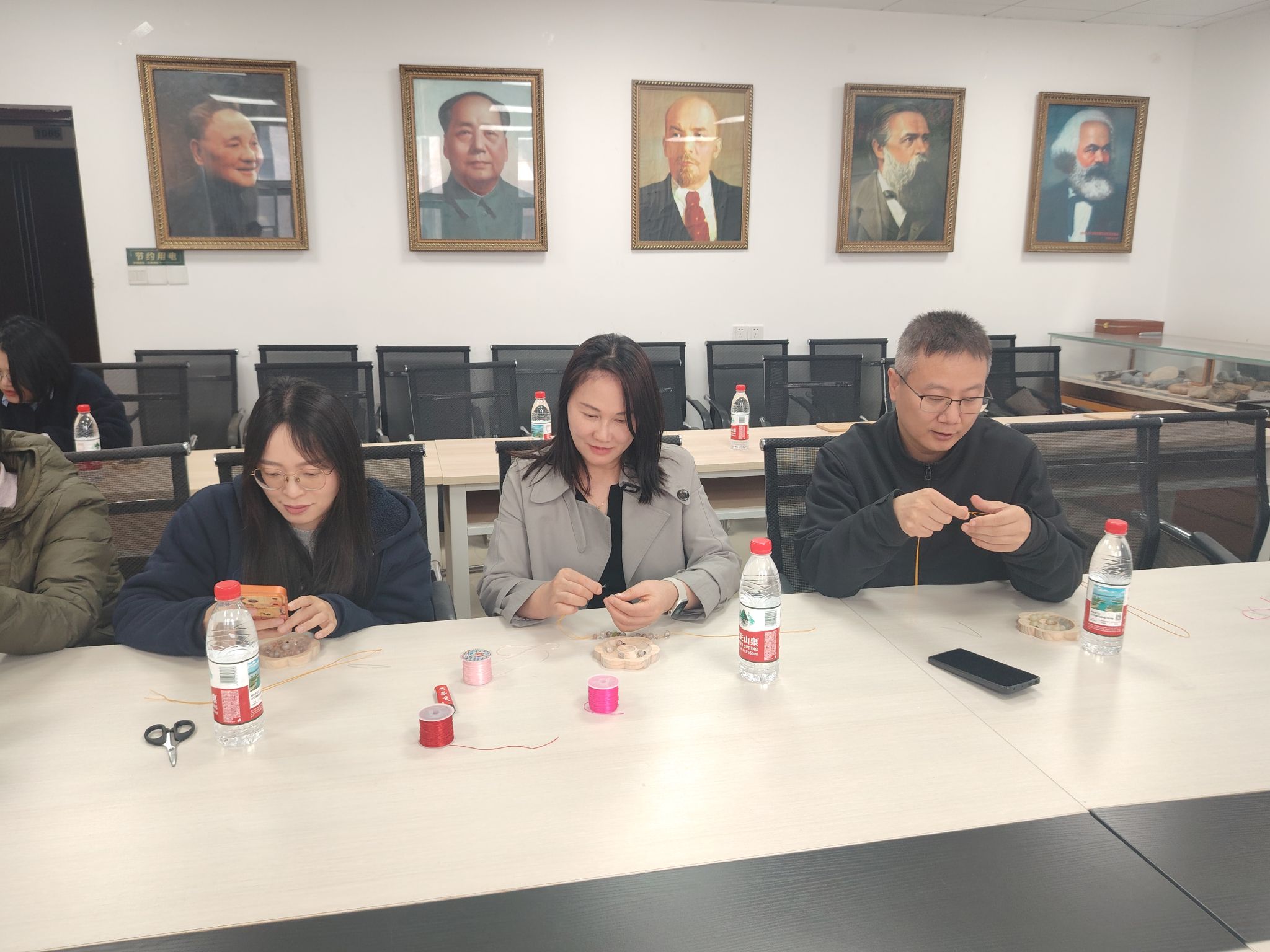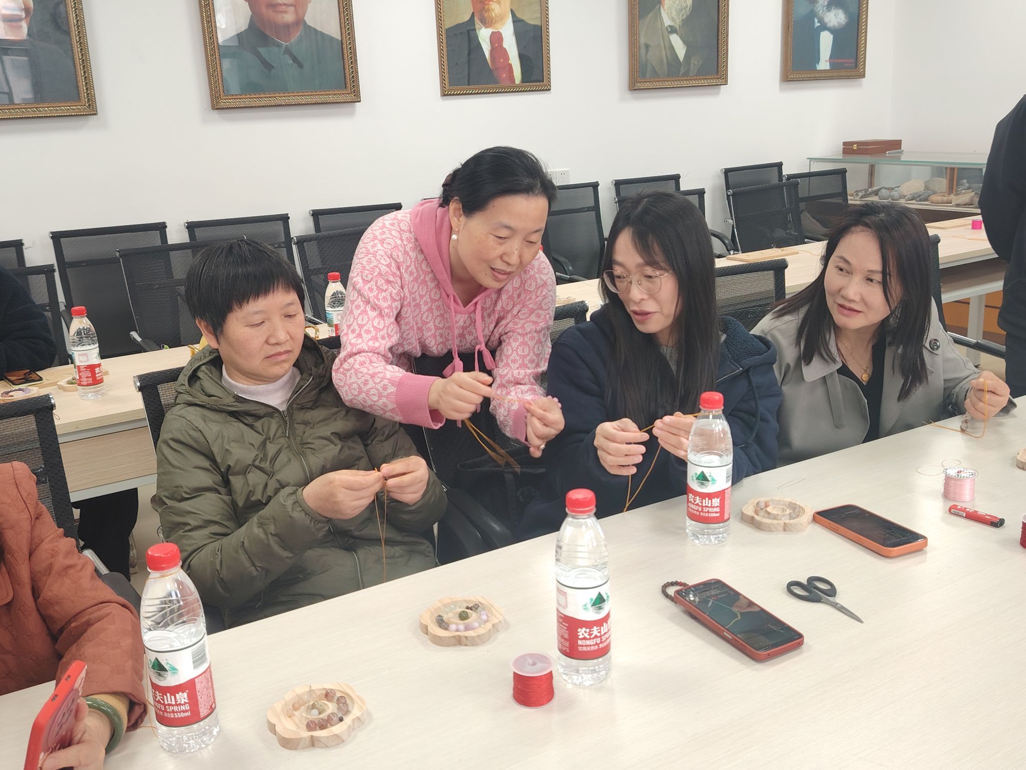 活动特邀主讲普及宝石鉴赏知识,让大家从专业视角重新审视身边的地质瑰宝在手作体验环节,女教师们亲手挑选原石、搭配色彩,在主讲老师指导下,学习并实践编绳技巧,在穿针引线中释放压力,也在切磋协作中增进了情谊。