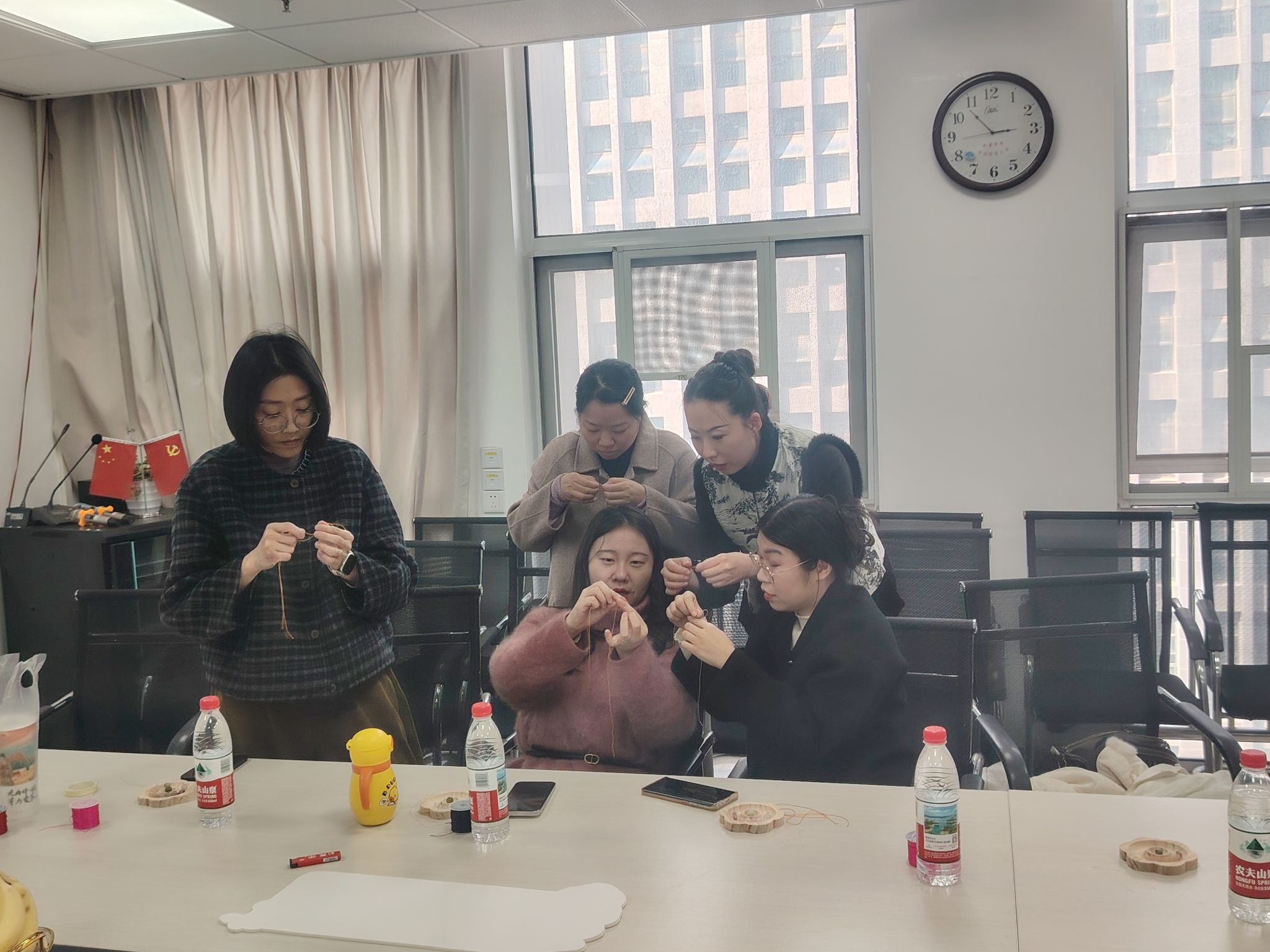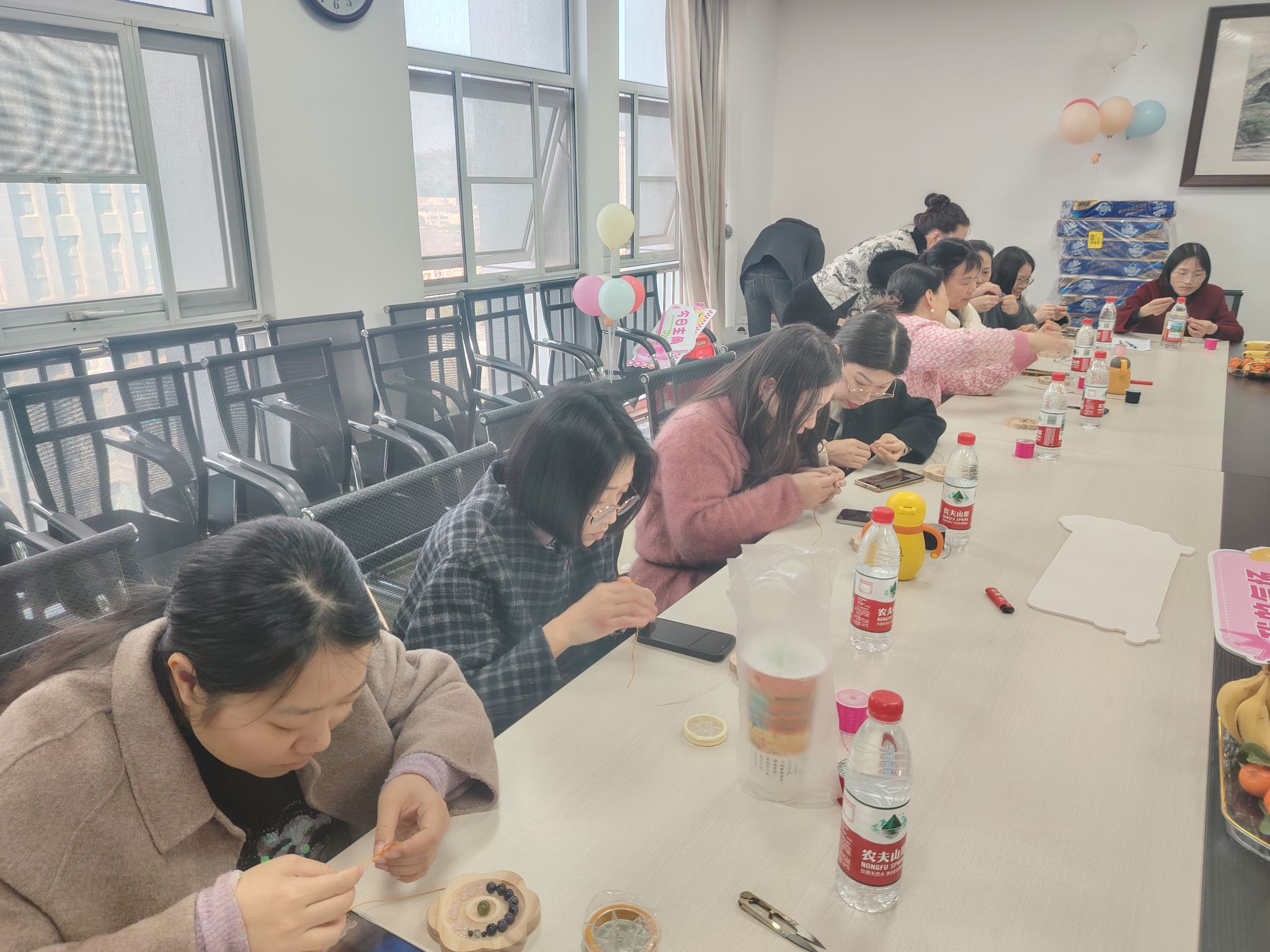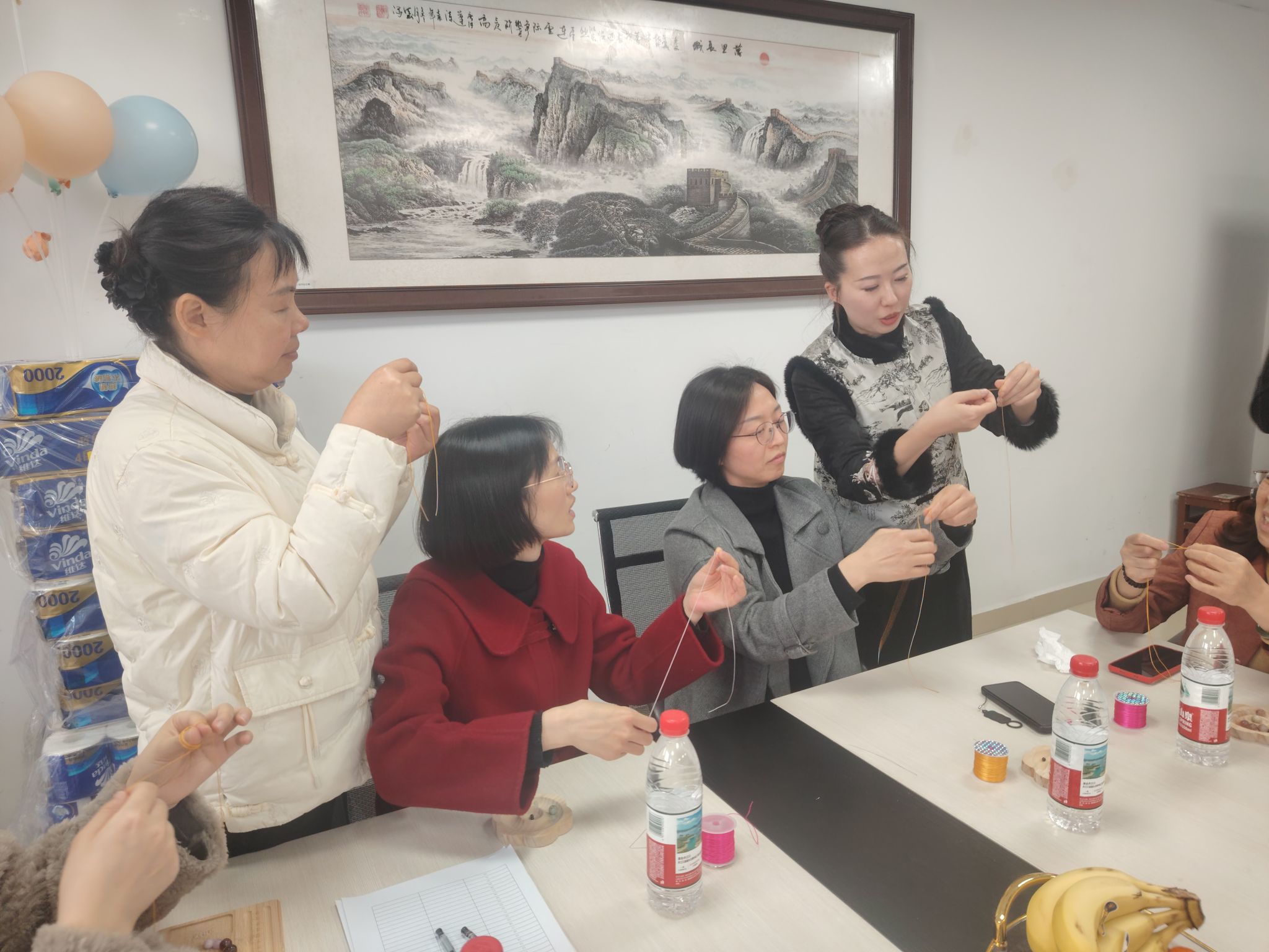 活动特邀主讲普及宝石鉴赏知识,让大家从专业视角重新审视身边的地质瑰宝在手作体验环节,女教师们亲手挑选原石、搭配色彩,在主讲老师指导下,学习并实践编绳技巧,在穿针引线中释放压力,也在切磋协作中增进了情谊。