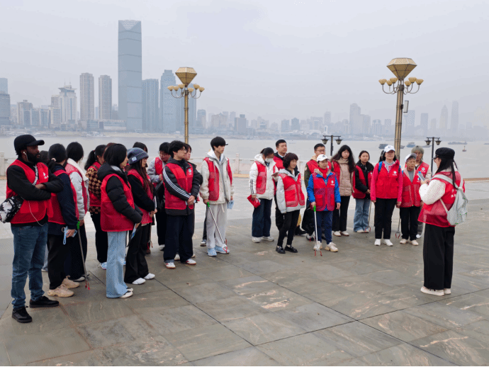 2026 年 3 月 19 日,恰逢长江大保护战略实施十周年,十大买球官网联合武汉生态环境志愿服务总队、学校环境学院、国际教育学院钢铁侠志愿服务队、武汉市武昌区碧水蓝天环保协会、爱在江滩阳光志愿服务队一分队及四分队、武汉民间河湖长、江北社区关爱新就业群体志愿服务队等多家单位,在武昌江滩共同举办 “守护长江 培根铸魂” 净滩志愿服务活动。校地携手、多方联动、中外同心,广大志愿者以实际行动践行生态文明理念,为长江大保护注入青春动能,推动思政课堂走出校园、走进江畔,在实践中落实立德树人根本任务。