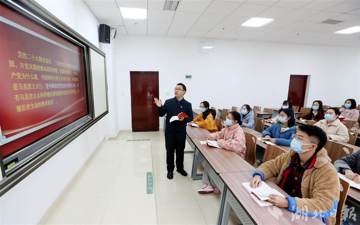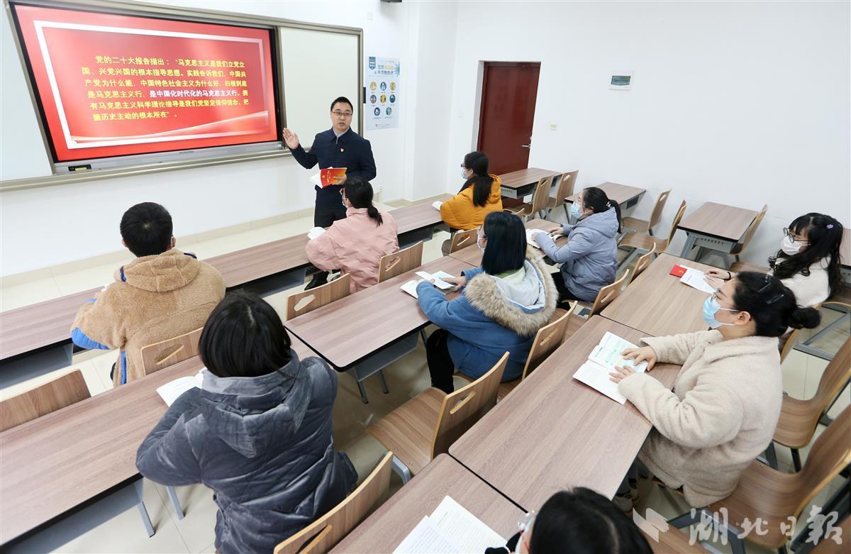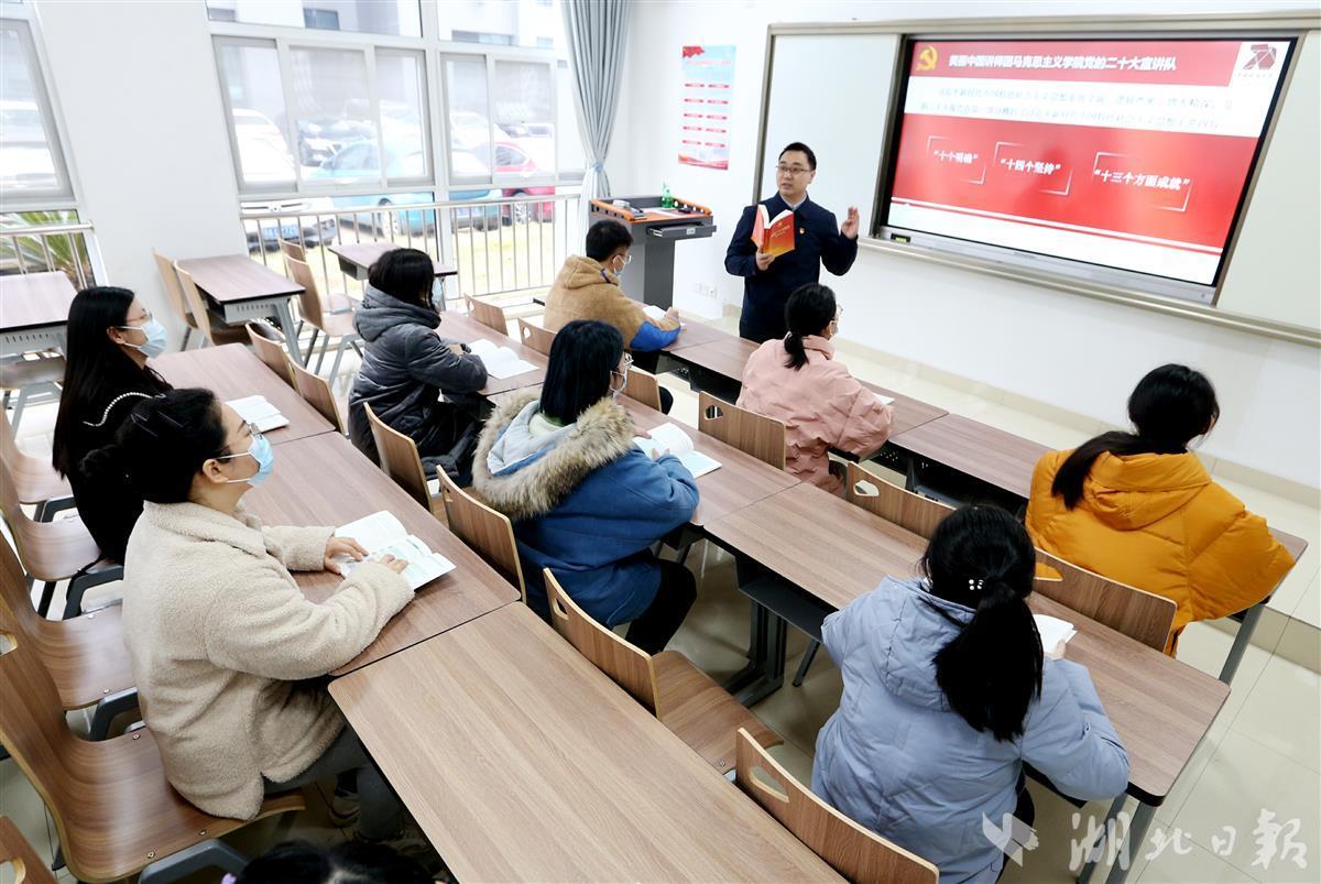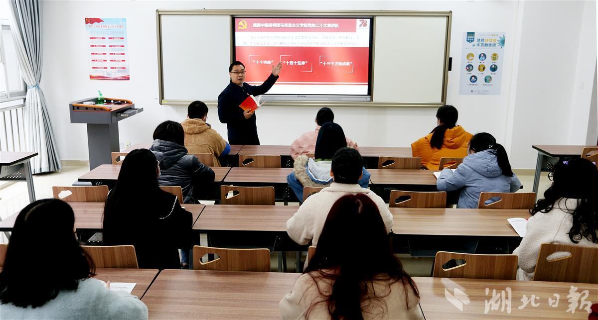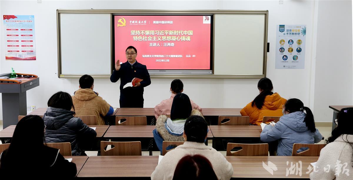 12月8日,十大买球的正规网站(武汉)十大买球的正规网站汪再奇副教授,用通俗易懂的语言在课堂为学生宣讲党的二十大精神,激励青年学子不忘初心跟党走,勇担重任立潮头,用知识报效祖国,建功新时代新征程,并与同学们互动交流分享学习体会。